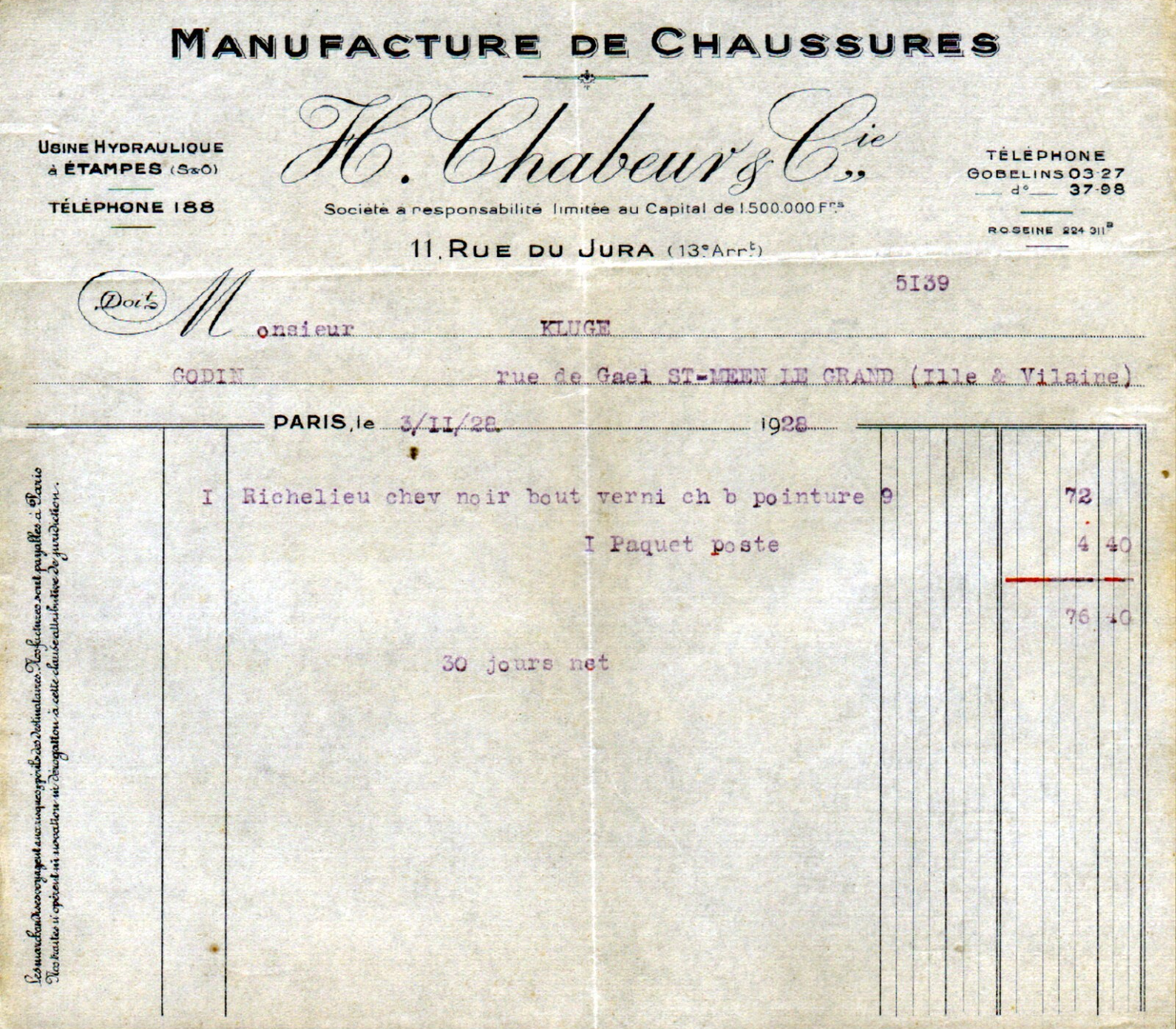 Son père Édouard Chabeur tient un dépôt de chaussures à Paris en 1901.
