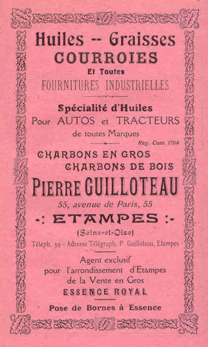 Transcription — Spécialités de pièces de rechanges pour brabants, tarares, extirpateurs, etc. — Ancienne Maison G. Harsant — Pierre Guilloteau — 10, rue de l'Île-Maubelle, Étampes (Seine-et-Oise) — Quincaillerie, fers, fontes, aciers, métaux — Briquettes, charbon de bois, charbons de terre, cokes, anthracites, charbons de forge, éclairage, chauffage, outillage, articles d'électricité, peintures, vernis, coffres-forts, incombustibles, garantis — Téléphone — Étampes, le … … 190..