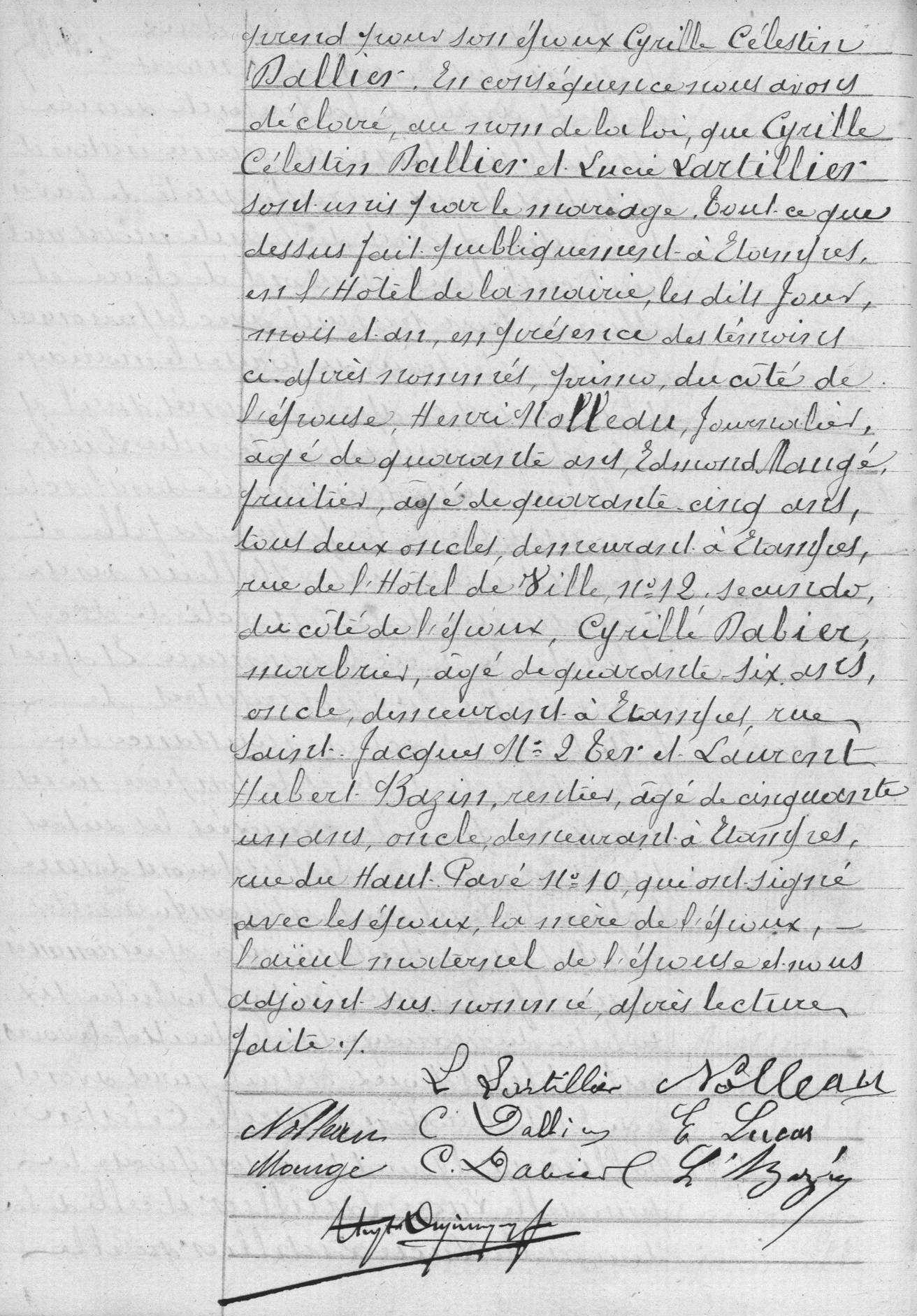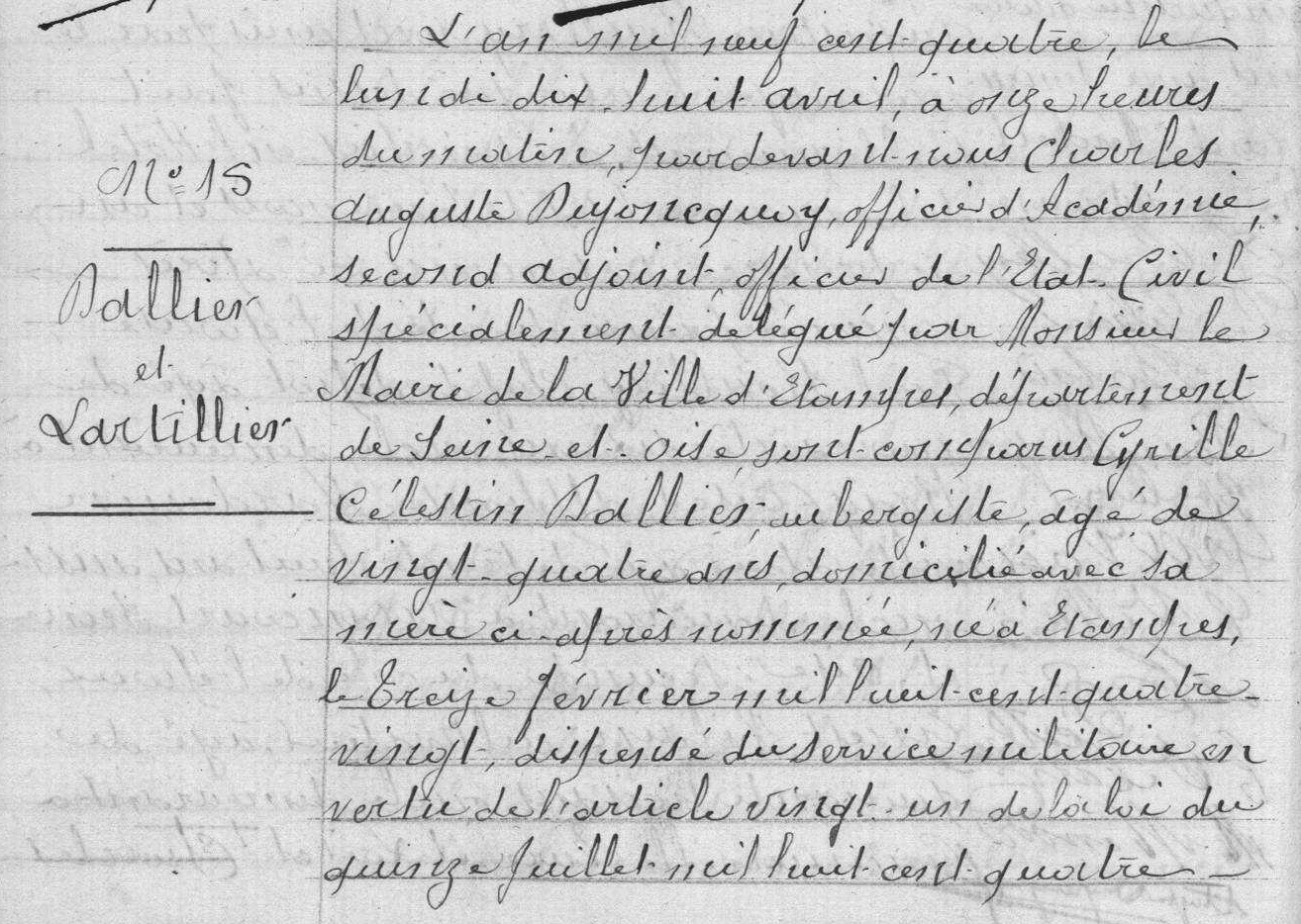 4 N 20.15 (ancienne cote 807 W 1.15) — Financement par la donation Dallier (1945-1962). – Comprend: ancien hôtel de la sous-préfecture: reconstruction de l’aile gauche: premier projet: vue en plan, vue des façades, coupe AB (1/100 e, 40 x 48 cm, Raymond Borel, architecte, juin 1952); devis estimatif par Marcel Pourlier de la valeur de la propriété donnée à la Ville par Lucie Lartillier, veuve de Cyrille Célestin Dallier, sise 46 promenade de Guinette (cadastrée B 1707p; B 1708p; B 1711p; B 1716p) (20 octobre 1949); attestation de la propriété Dallier à la Ville d'Étampes (étude d'Antoine Latournerie, 12 novembre 1948); plans et coupes des bâtiments de l'ancienne propriété Dallier (1/100e, 60 x 55 cm, Marcel Pourlier, architecte, sans mention de date). — d'après l'inventaire réalisé par
