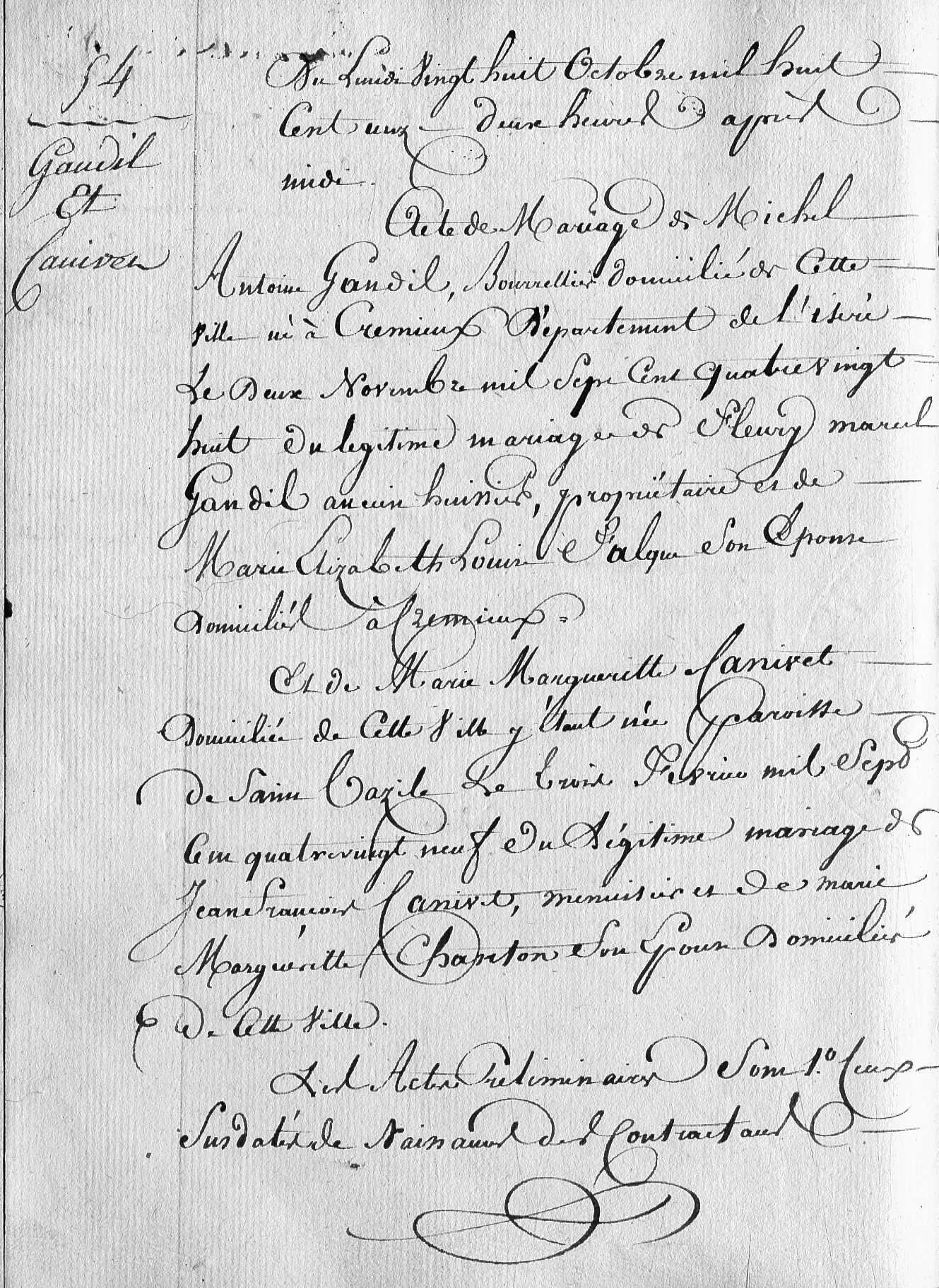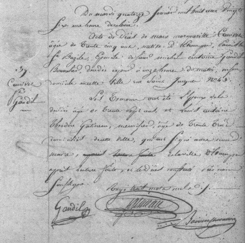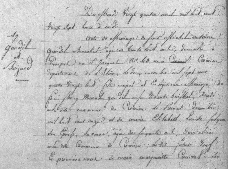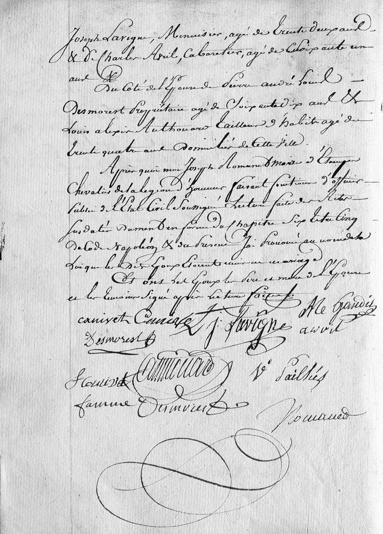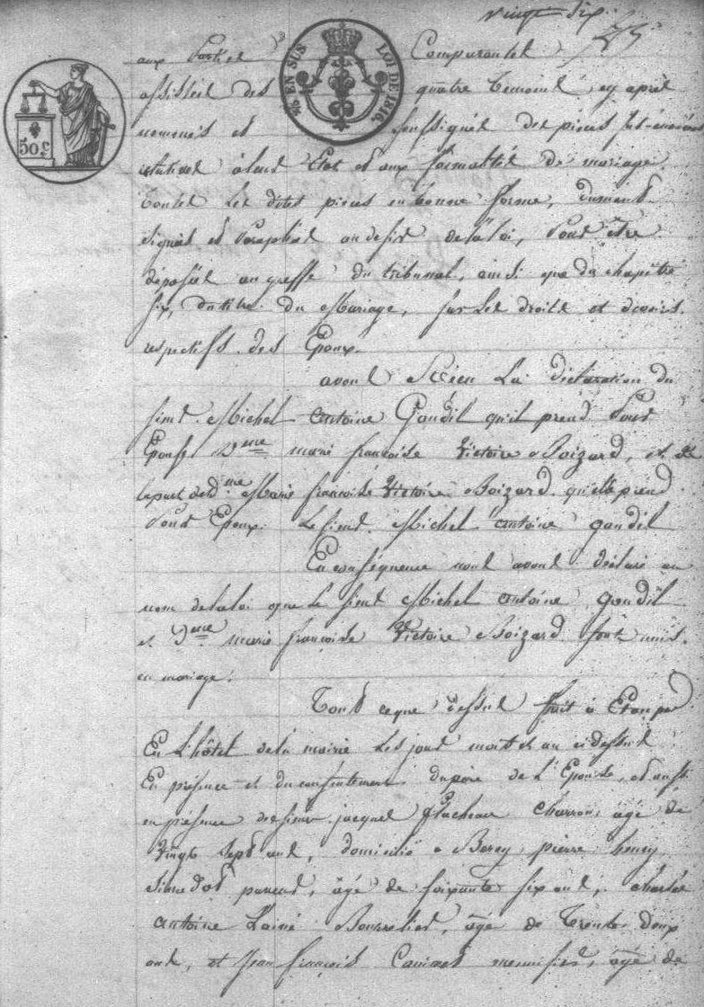 Morigny-Champigny le 3 février 1835. Leur fille Pauline dite Éléonore, 9 mois, est née à même cette adresse dès le 22 octobre 1835.
