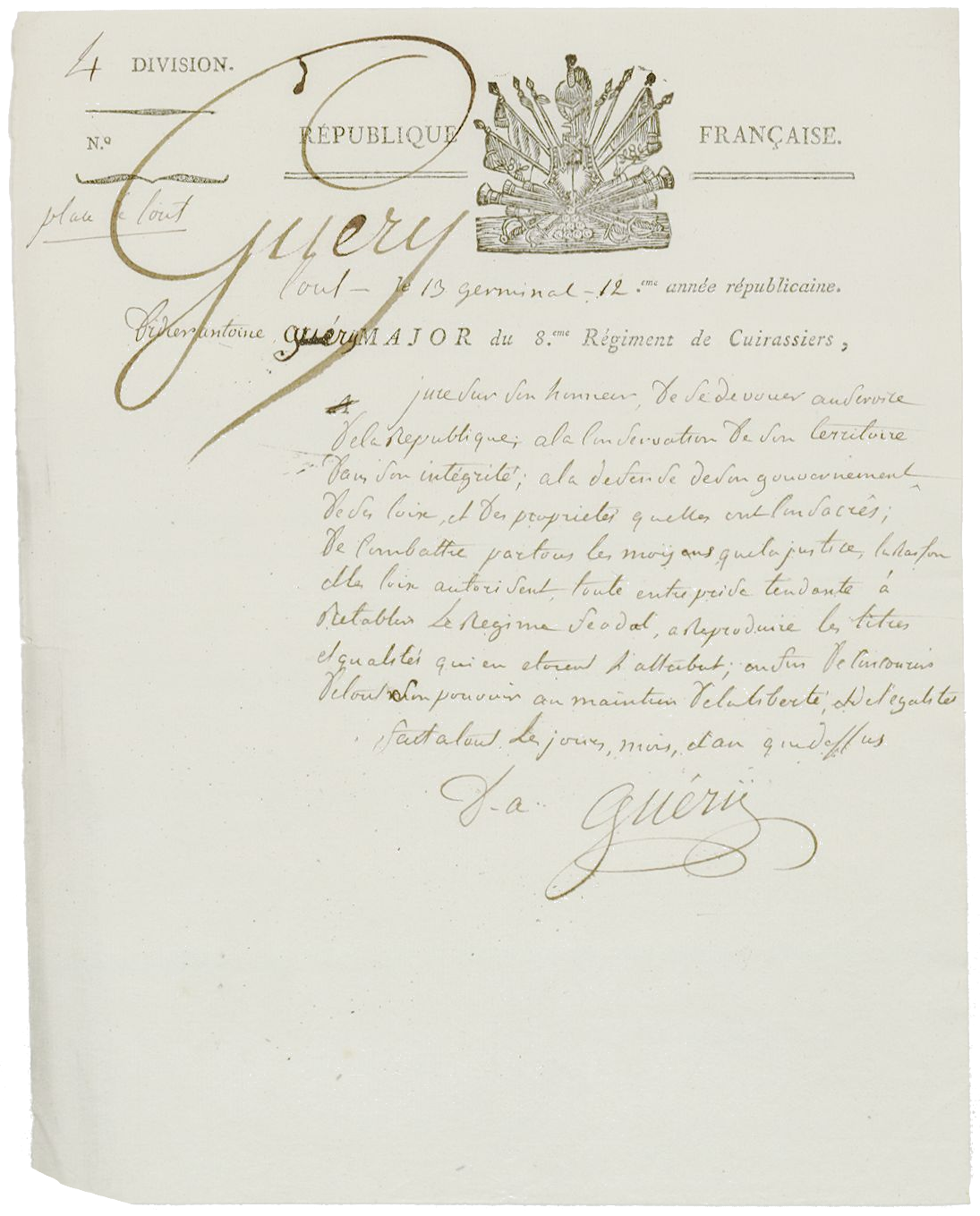 - 1° un serment de fidélité à la République du 13 germinal an XII (3 avril 1804).
