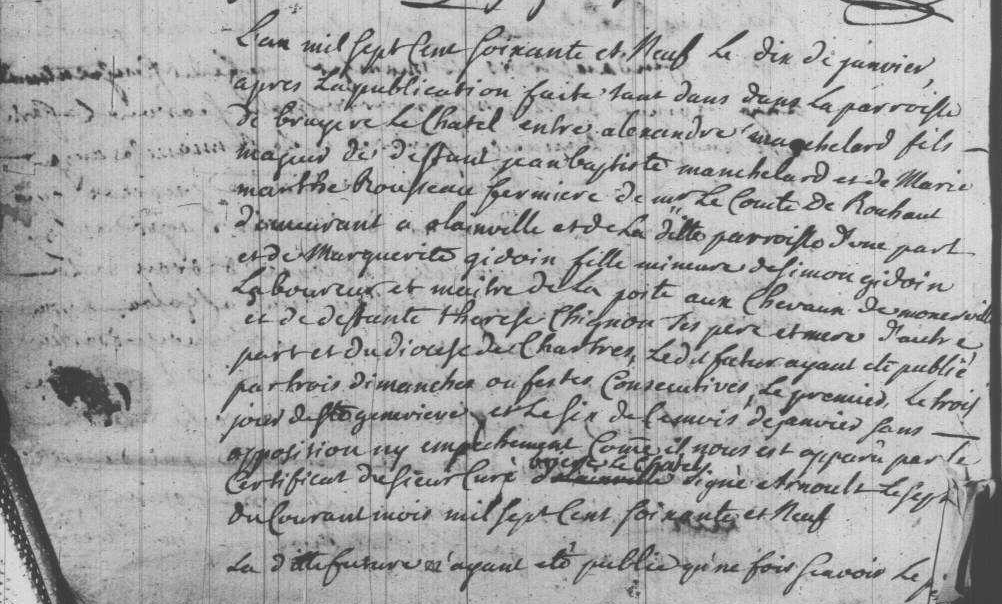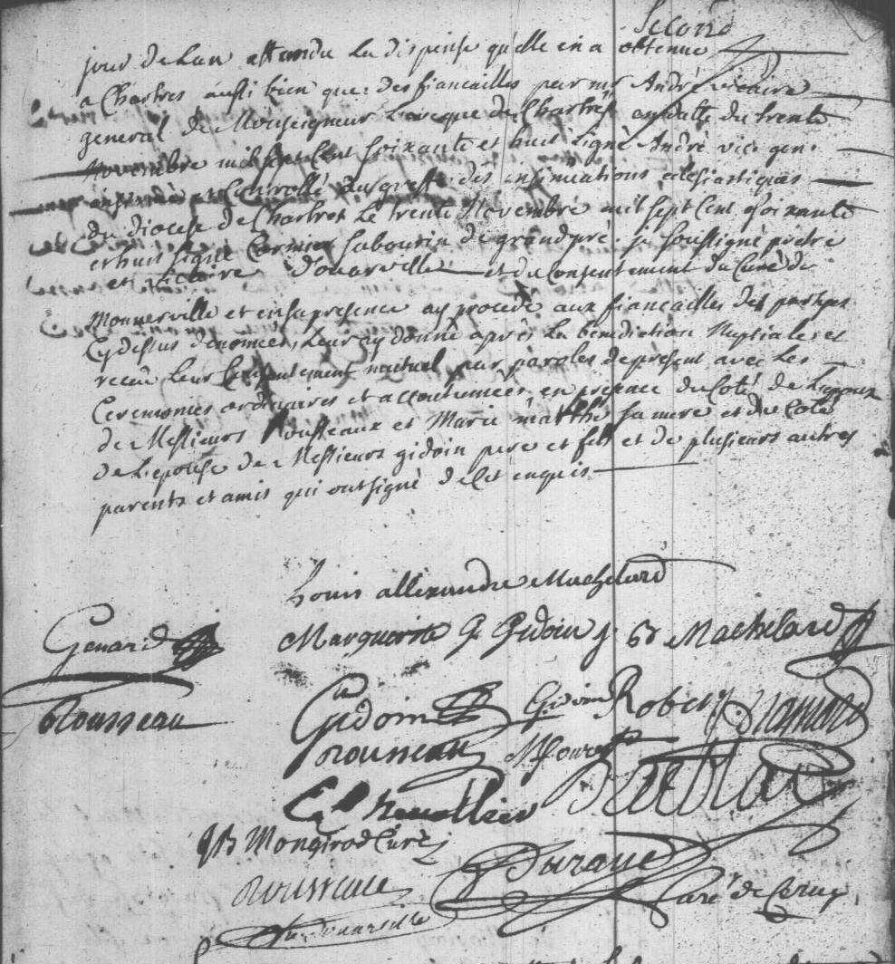- Il se maria à Monnerville le 10 janvier 1769 avec Marguerite-Geneviève Gidoin (1747-1816), fille de Simon Gidoin (1703-1779), laboureur et maître de poste à Monnerville, receveur des Dames de Saint Cyr, et de Thérèze Chignon (1708-1765).