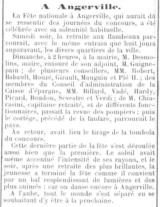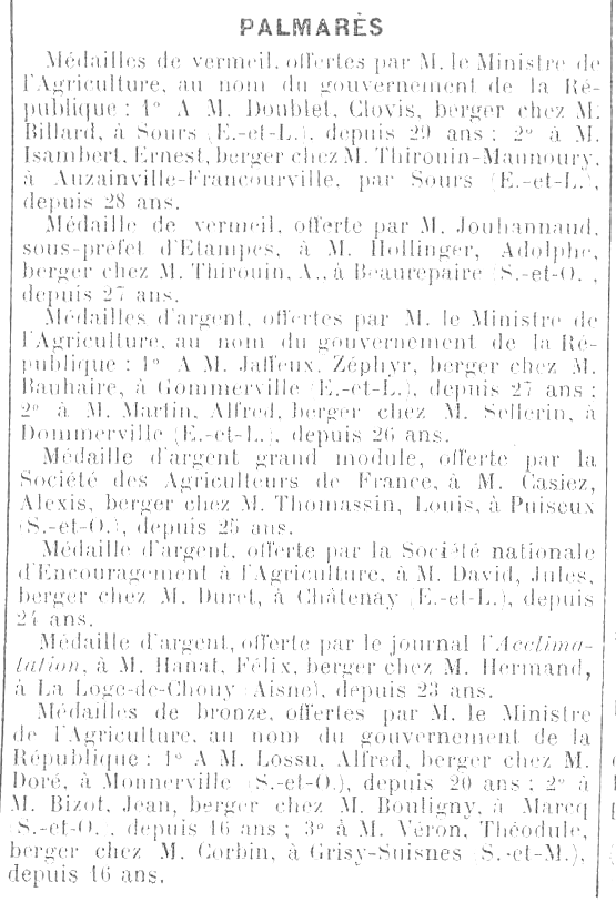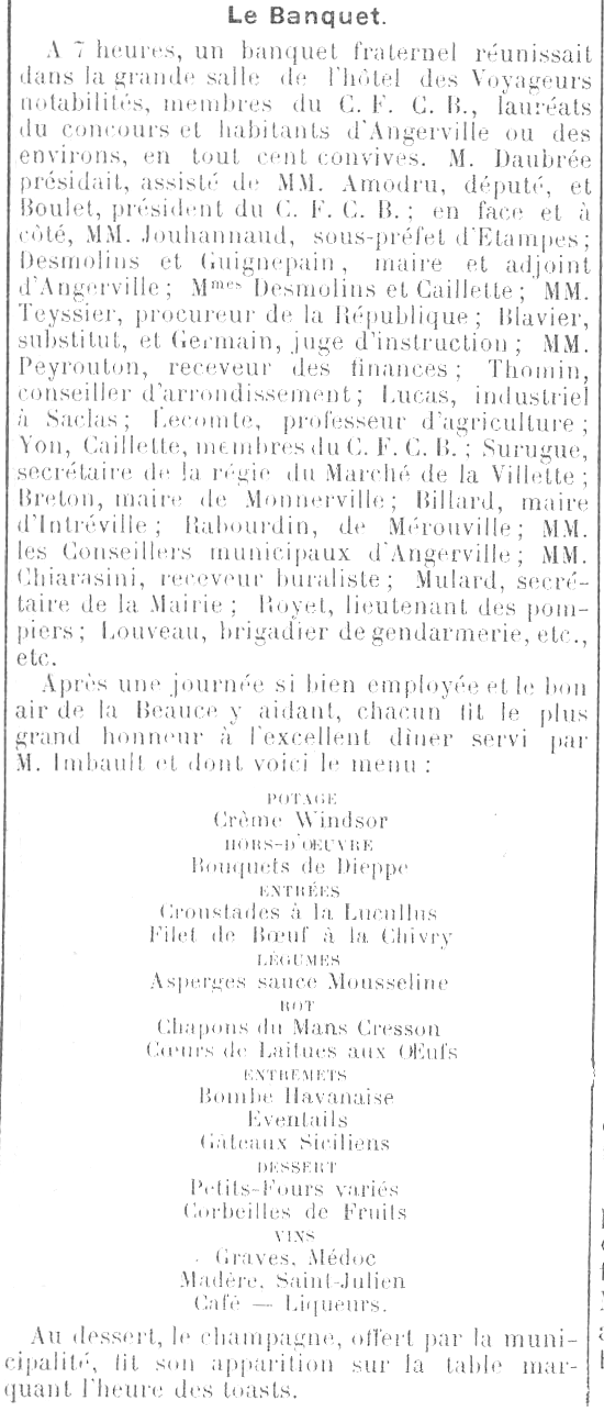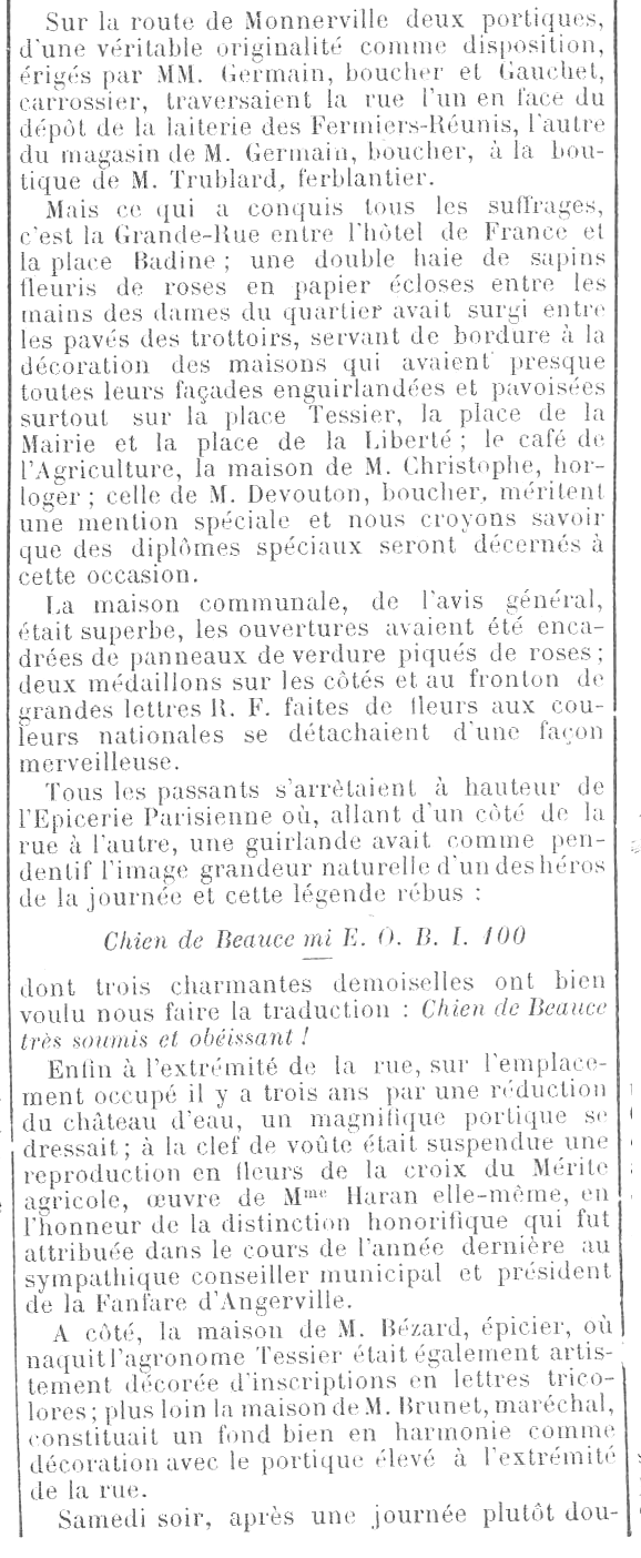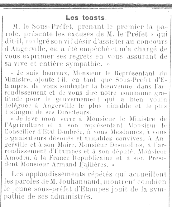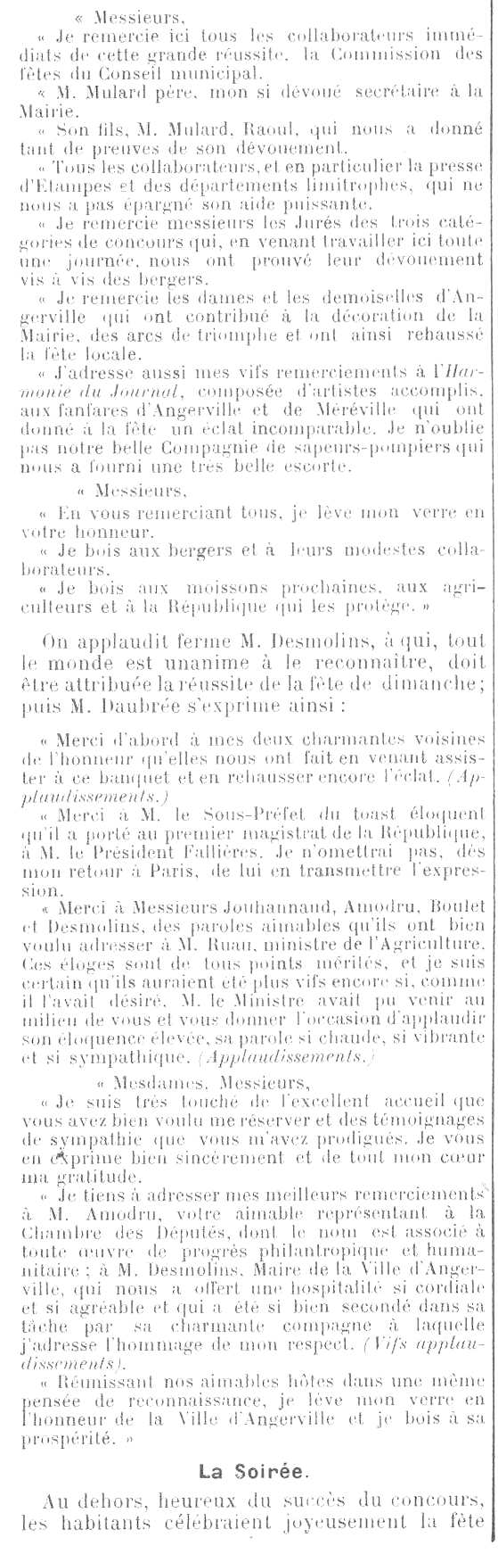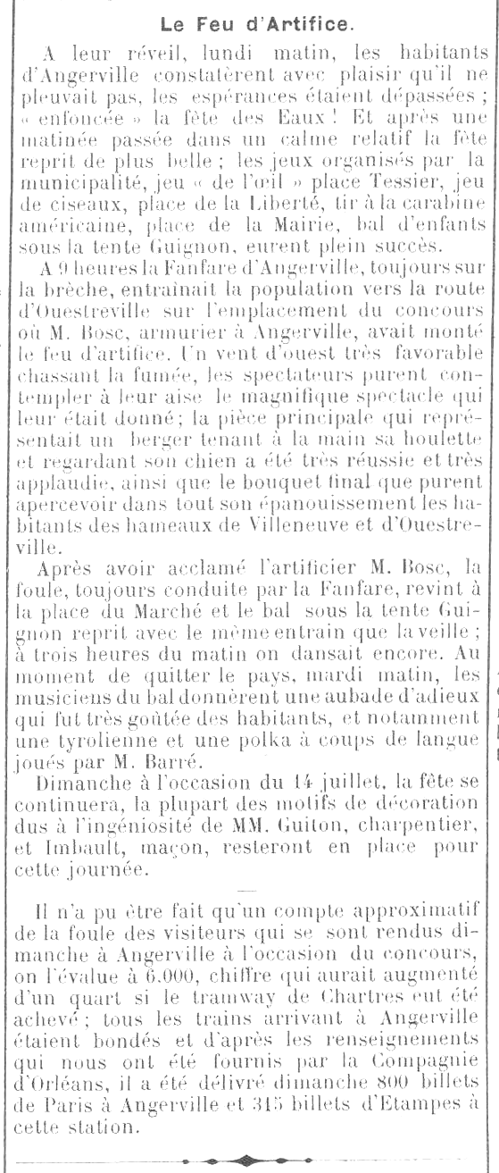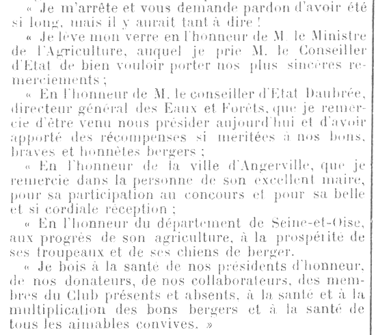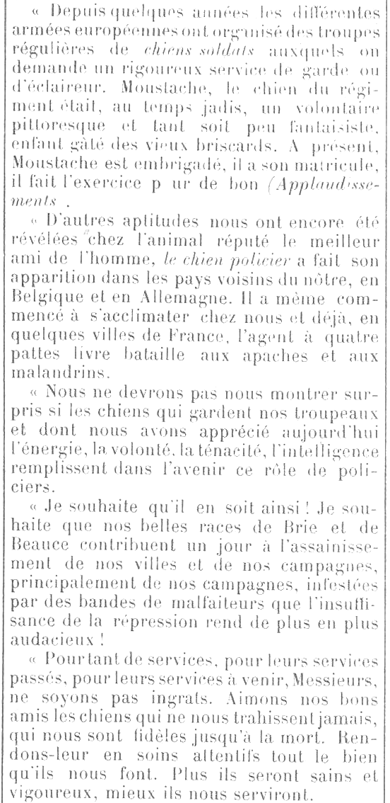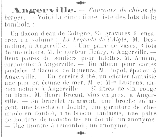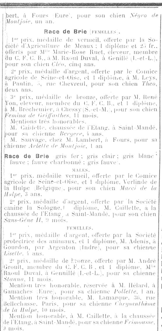 - Anonyme, “Le concours de chiens d'Angerville”, L'Abeille d'Étampes 96/17 (18 avril 1907) 2, 96/18 (25 avril 1907) 2, 96/19 (4 mai 1907) 2, 96/20 (18 mai 1907) 2, 96/21 (25 mai 1907) 2, 96/22 (1er juin 1907) 2, 96/23 (8 juin 1907) 2, 96/24 (15 juin 197) 2, 96/25 (22 juin 1907) 2, 96/26 (29 juin) 2, 96/27 (6 juillet) 2, 96/28 (13 juillet 1907) 1-3 et 96/28 (20 juillet 1907) 2.