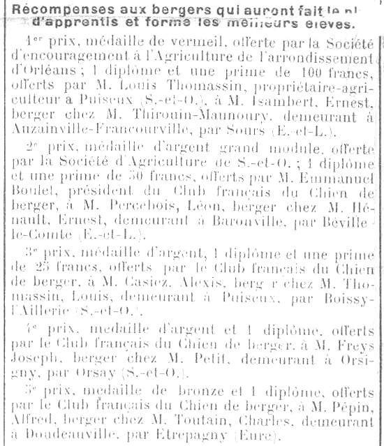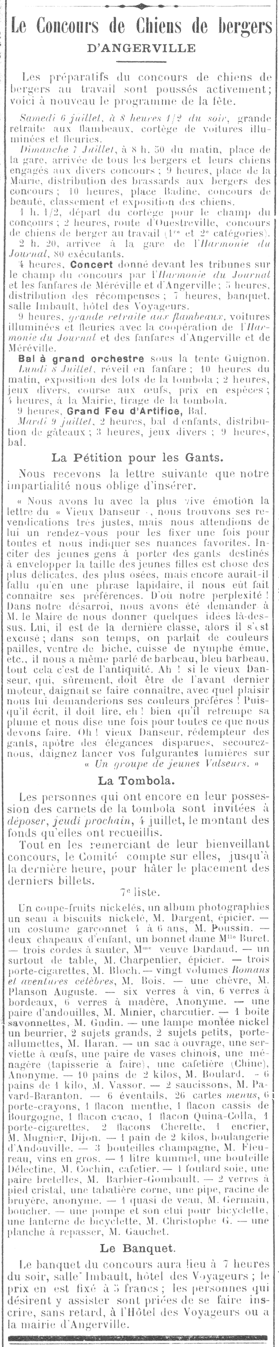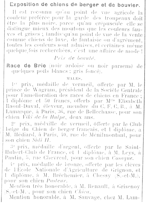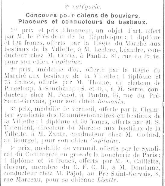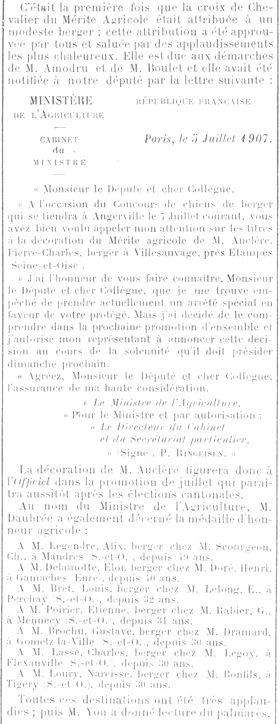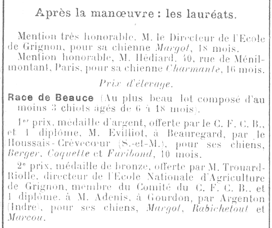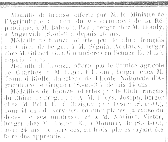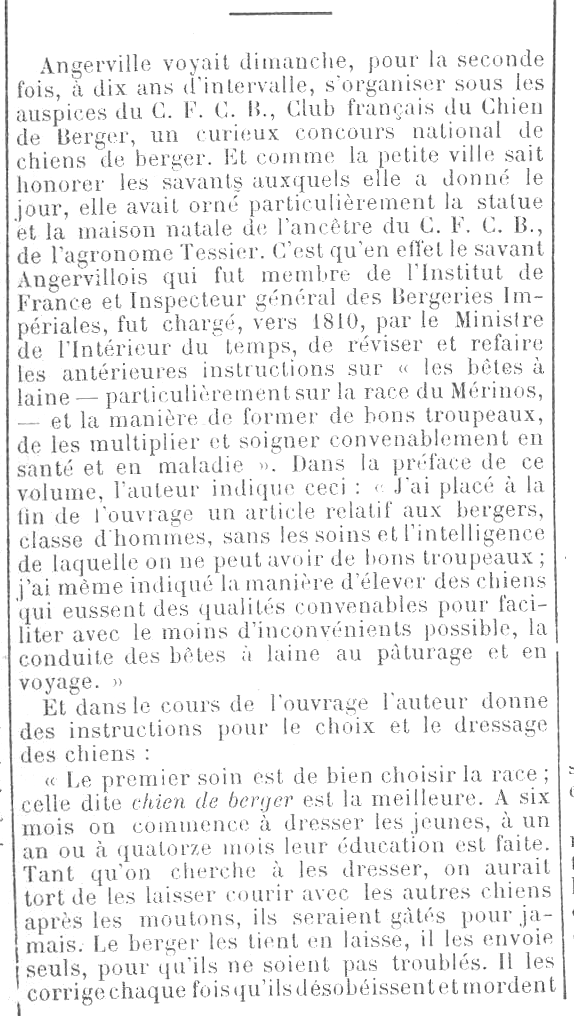 - Anonyme, “Concours de chiens de berger à Angerville”, Le Sport universel illustré. Revue hebdomadaire de tous les sports et de l'élevage 571 (21 juillet 1907) 485 et 494-496 (avec 12 bons clichés).