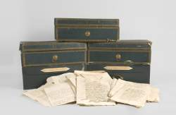 - Cet ensemble d’archives est présenté dans ses cartons d'origine marqués des fiefs et contenant les Foy, Hommages, Titres de féodalité, Baux à cens et Rentes des fiefs.