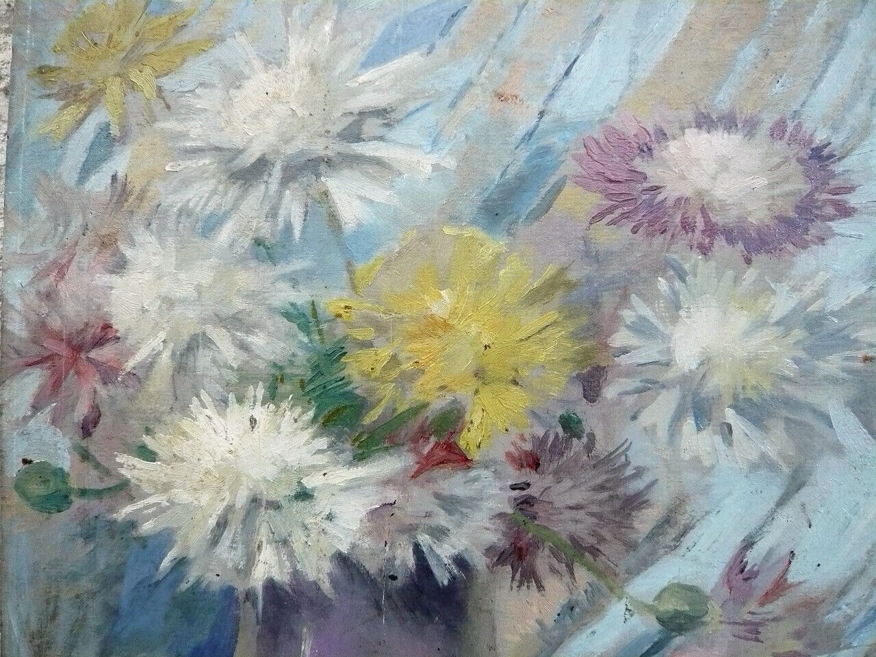 Bouquet de fleurs dans un vase (huile sur carton)