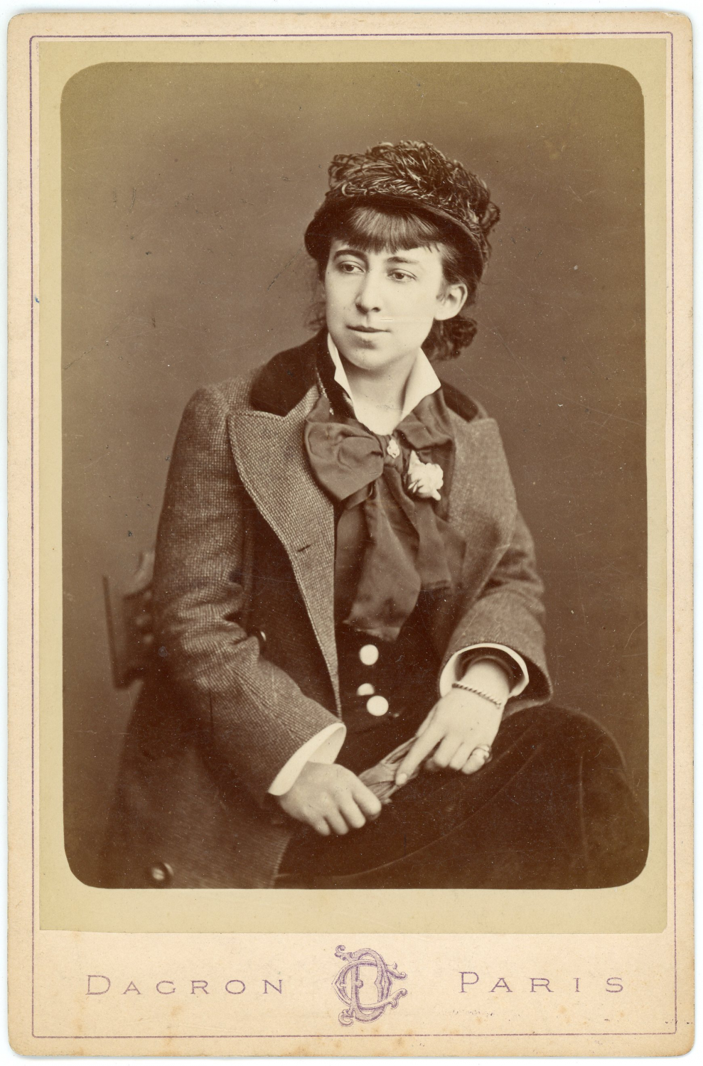 - Ce portrait photographique de Louise Abbéma en plan taille, est édité par René Dagron. Un exemplaire en était en vente en février 2023 sur le site d'enchères en ligne eBay avec une mise à prix de 199 €. L'exemplaire en question, développé en sépia sur une carte de 16 cm de haut sur 11 de large, porte au doit dater, d'après la typographie utilisée par cette carte comparée à celle d'autres clichés mieux datés, des environs de 1878. On reproduit ici le cliché de cette carte mis en ligne par le vendeur.