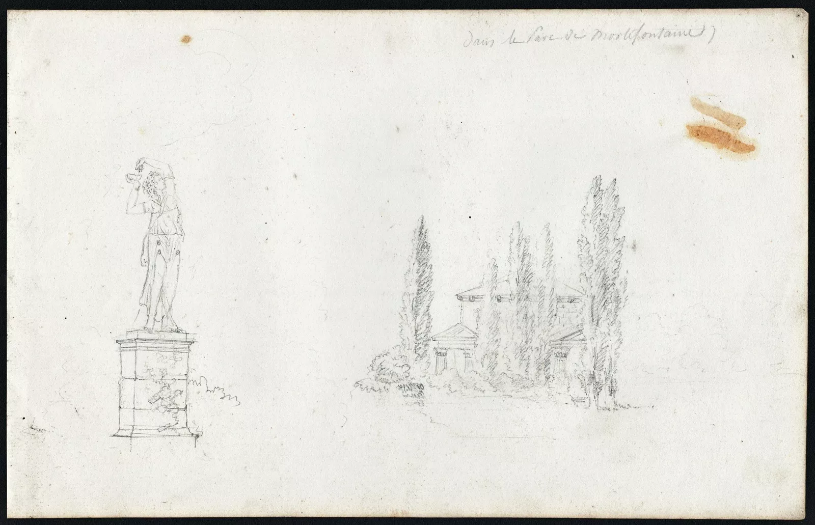 - Au verso on trouve un dessin au crayon sans titre représentant le château de Compiègne (Oise).