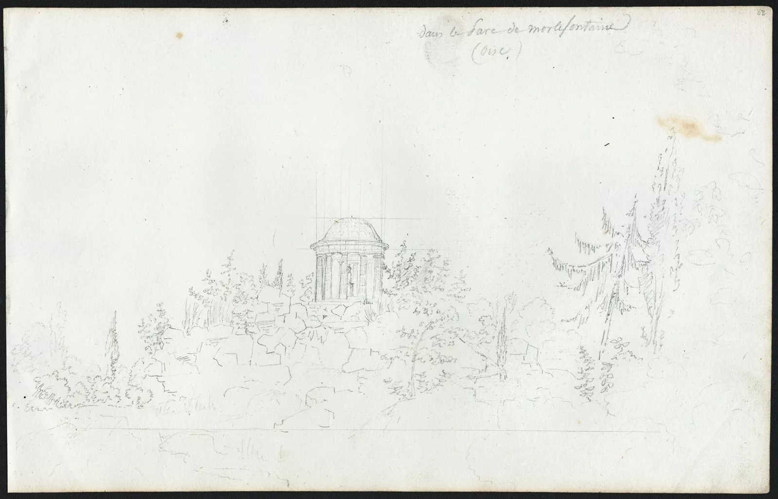 - Titré en haut à droite: “dans le Parc de mortefontaine)”, numéroté en haut à droite: “63”.