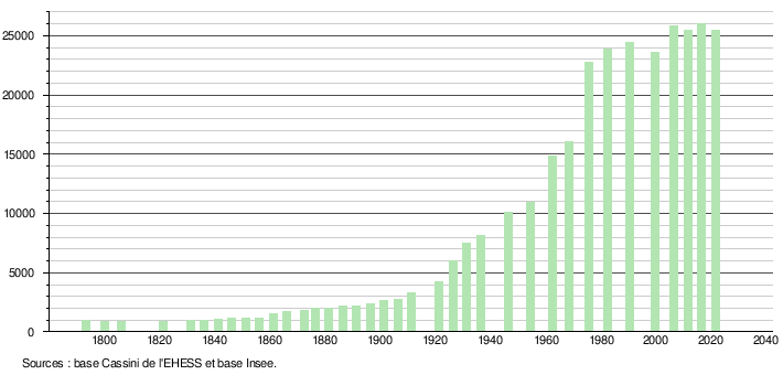 Sur la base de données empruntées, pour les années 1793-1999, au site du Laboratoire de Démographie et d'Histoire Sociale de l'EHESS, École des hautes études en sciences sociales; et, pour les années 2006 à 2021, au site de l'INSEE, Institut national de la statistique et des études économiques.