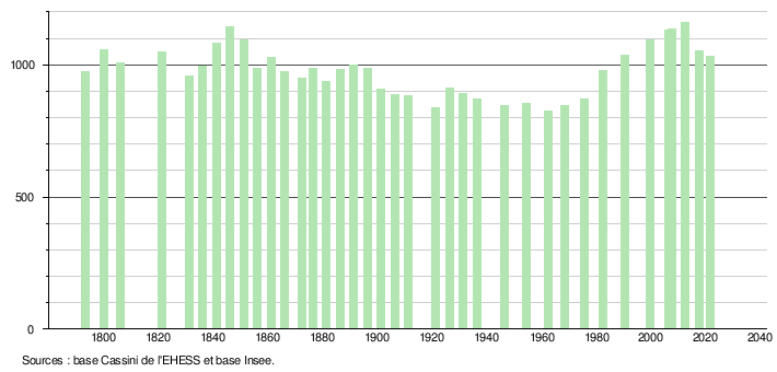 Sur la base de données empruntées, pour les années 1793-1999, au site du Laboratoire de Démographie et d'Histoire Sociale de l'EHESS, École des hautes études en sciences sociales; et, pour les années 2006 à 2021, au site de l'INSEE, Institut national de la statistique et des études économiques.