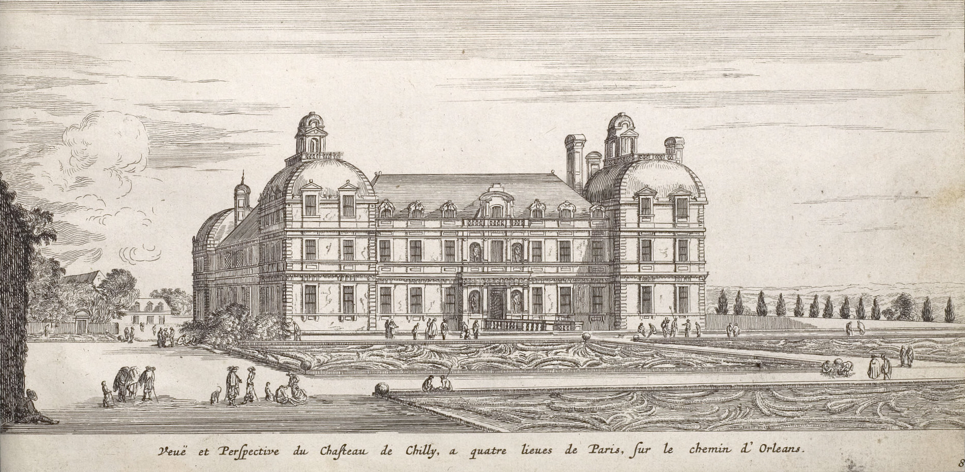 - Israël Silvestre, “8. Veuë et Pespective du Chasteau de Chilly, a quatre lieues de Paris, sur le chemin d'Orleans”, in Diverses Veues et Perspectives nouvelles de Rome, Paris et des autres lieux. Dessiné au Naturel par Israel Silvestre et d'autres Maistres (recueil d'eaux-fortes, 14,4 cm sur 27), vers 1660.