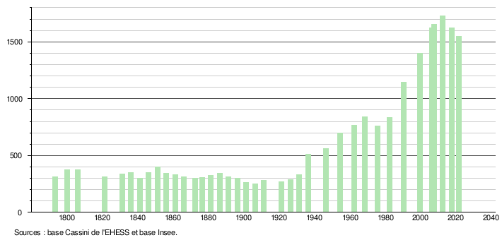 Sur la base de données empruntées, pour les années 1793-1999, au site du Laboratoire de Démographie et d'Histoire Sociale de l'EHESS, École des hautes études en sciences sociales; et, pour les années 2006 à 2021, au site de l'INSEE, Institut national de la statistique et des études économiques.