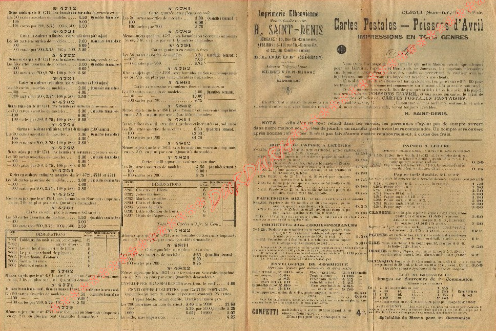- Henri Saint-Denis ne touche que de très loin à l'Essonne, où on été customisées et diffusées certaines de ces cartes postales passe-partout. Mais comme il est peu connu, on fait ici cadeau à tout le monde de quelques renseignements sur cet éditeur qui fut aussi un historien notable de son beau pays d'Elbeuf.