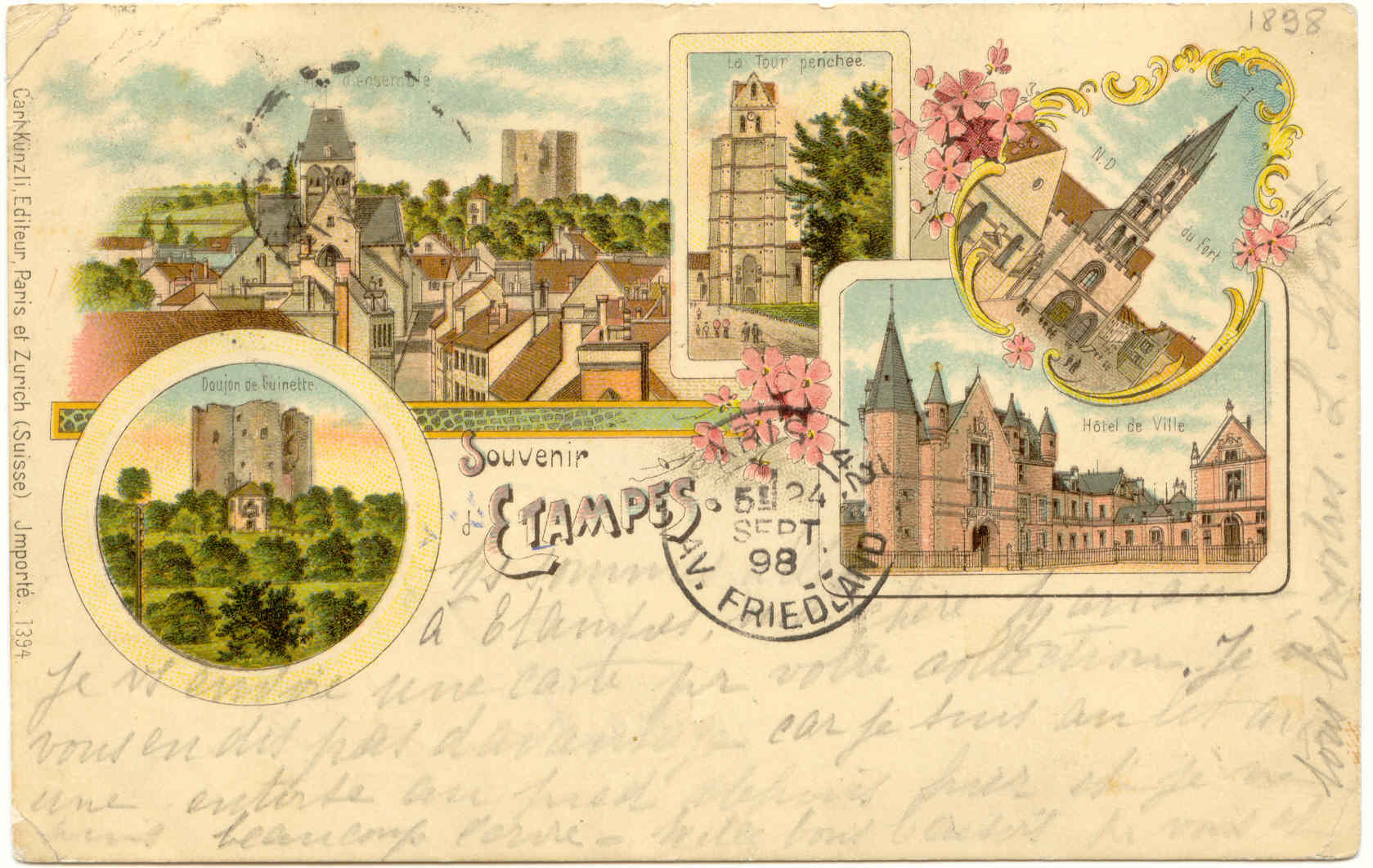 - Jean-Michel Rousseau a scanné en 2008 la carte postale qui suit, dont l'original lui avait été prêté par un collectionneur étampois, en vue d'en mettre en ligne à terme sur le défunt Corpus Étampois une série aussi complète que possible, à un format réduit, en raison des contraintes techniques de cette époque. On en donne ici le fichier d'origine.