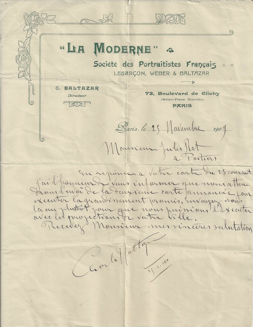 - Photographe de profession à Paris, d'abord au 7bis rue Eugène-Carrière, puis 90 rue Damrémont, il fut aussi directeur de Paris-Portraits, société de portraitistes français qui produisaient à la chaîne et sur commande des portraits. Ces peintures, fusains, pastels, charbons, sépias, souvent sur la base de portraits photographiques, se retrouvent souvent de nos jours sur des sites internet de vente aux enchères.