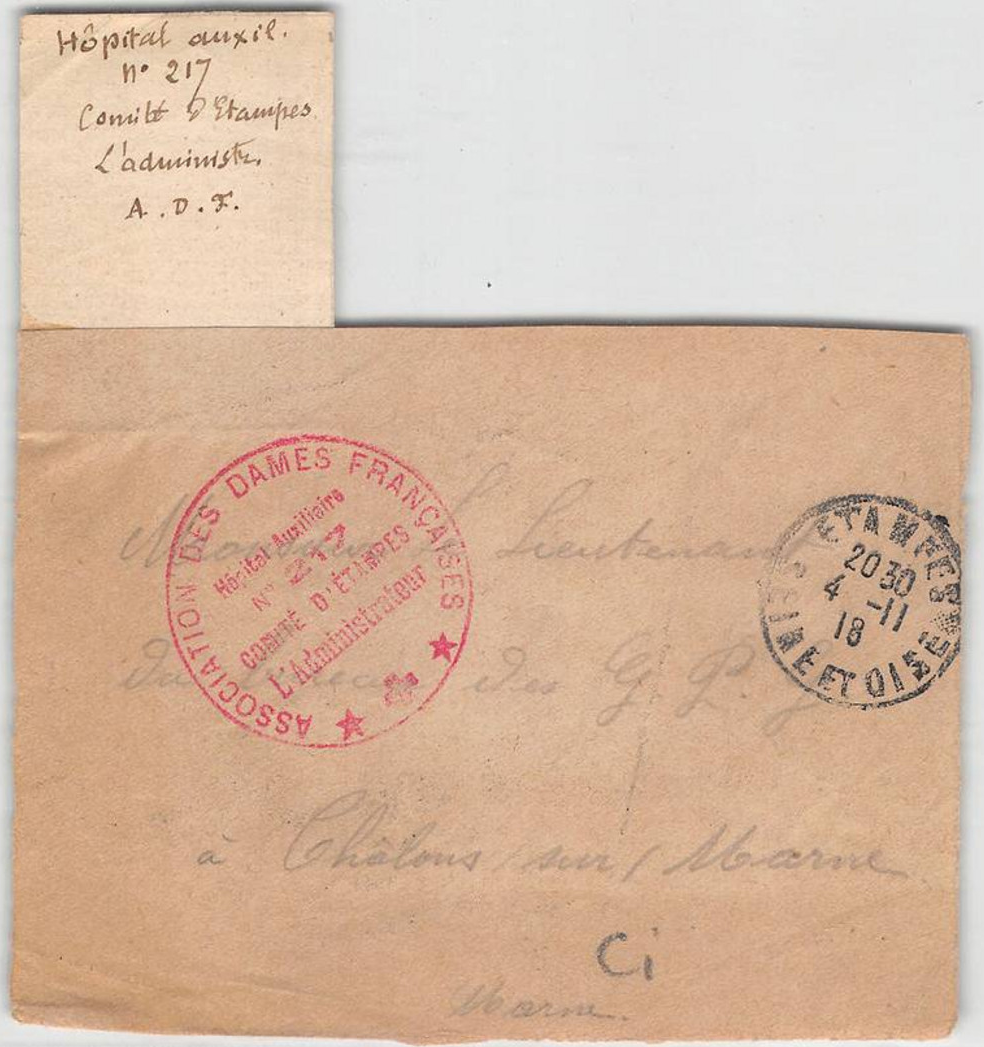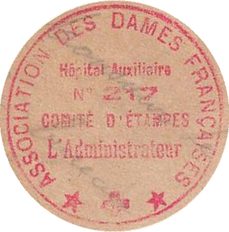 - Tampon: Association des Dames Françaises - Hôpital auxiliaire n°217 - Comité d'Étampes - l'Administrateur.