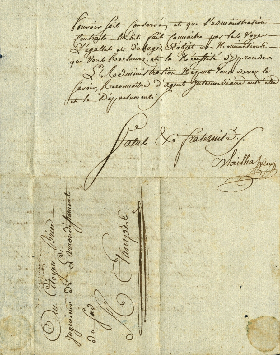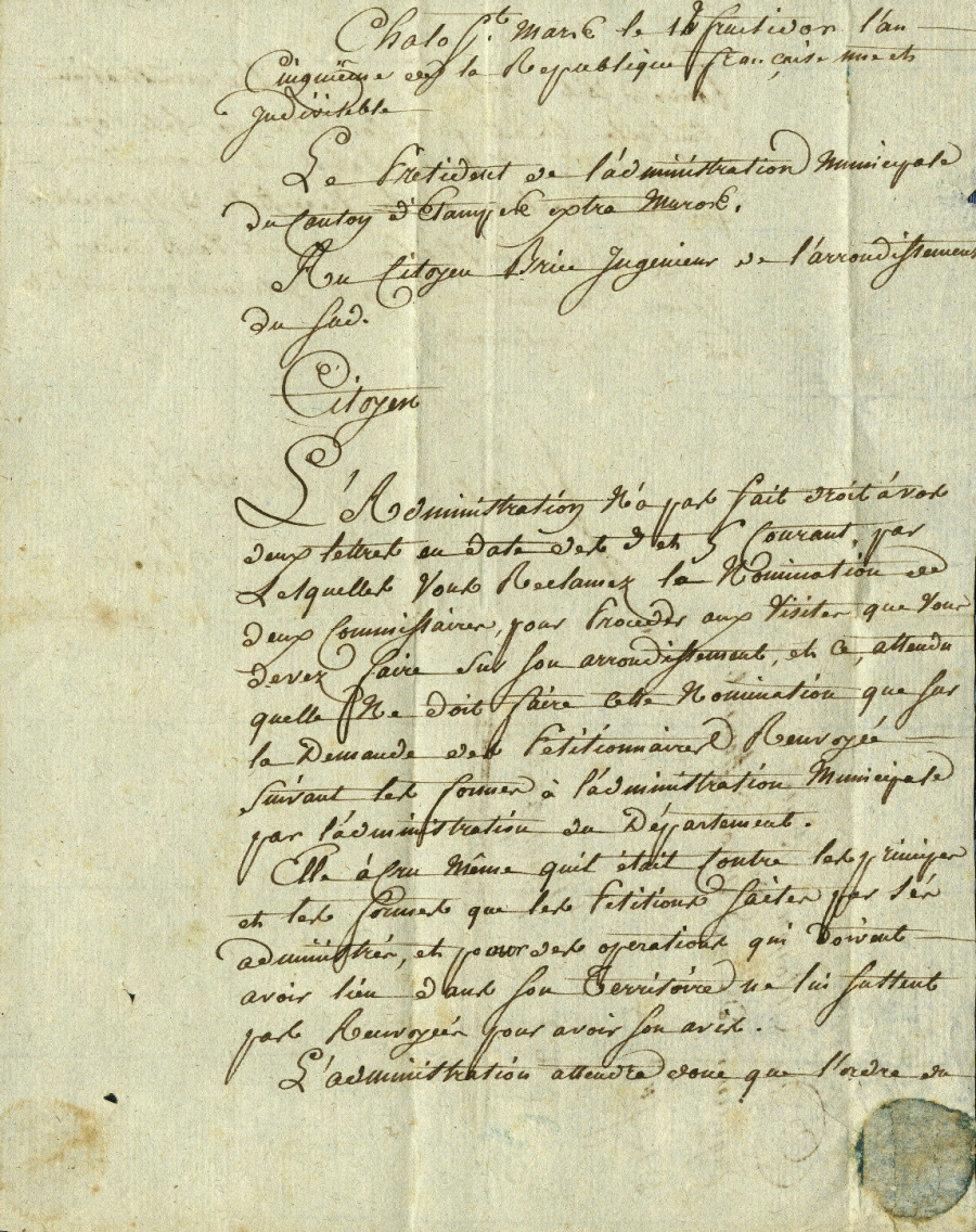 - Courrier daté de Chalo-Saint-Mars du 12 fructidor an 5 (29 août 1978).