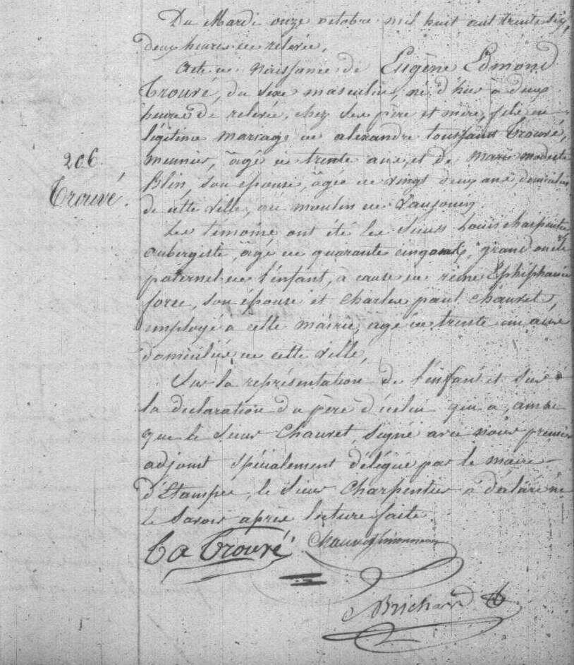 - Eugène-Edmond Trouvé, né à Étampes le 10 octobre 1836, était le fils de Marie-Modeste Blin et d'Alexandre-Toussaint (1805-1849), meunier.