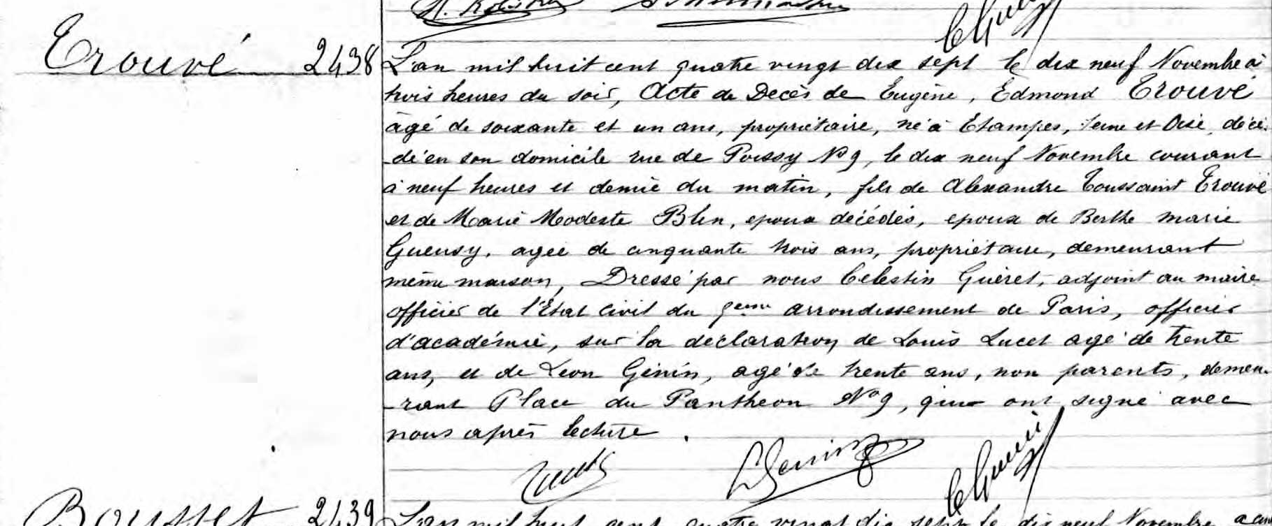 - Décès à Paris en 1897 — AD75 via Généanet.