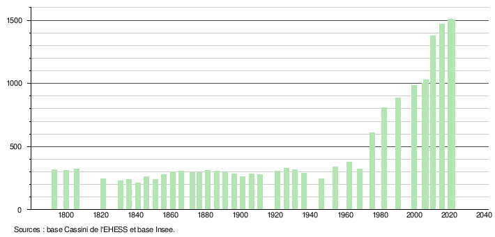 Sur la base de données empruntées, pour les années 1793-1999, au site du Laboratoire de Démographie et d'Histoire Sociale de l'EHESS, École des hautes études en sciences sociales; et, pour les années 2006 à 2021, au site de l'INSEE, Institut national de la statistique et des études économiques.