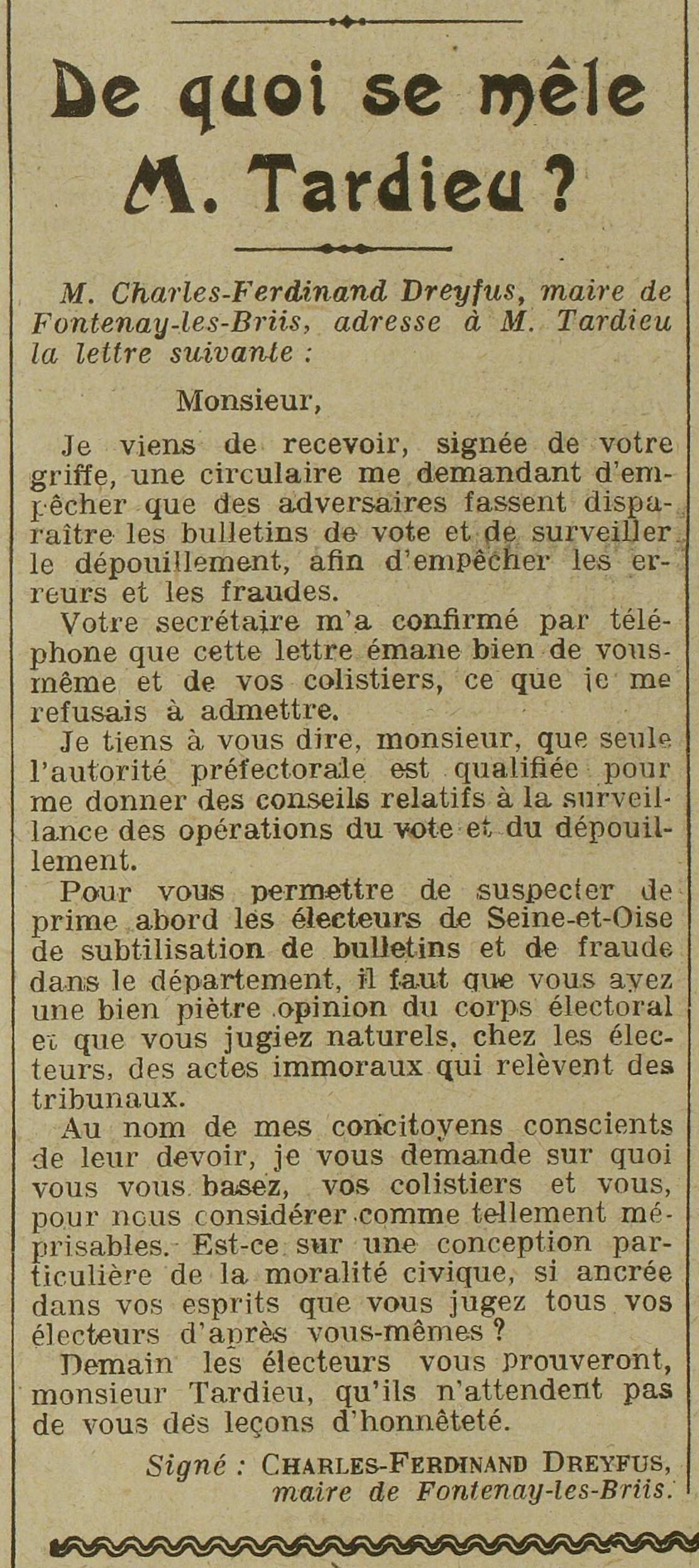 - Voici ce que dit M. Charles Ferdinand-Dreyfus dans sa brochure: