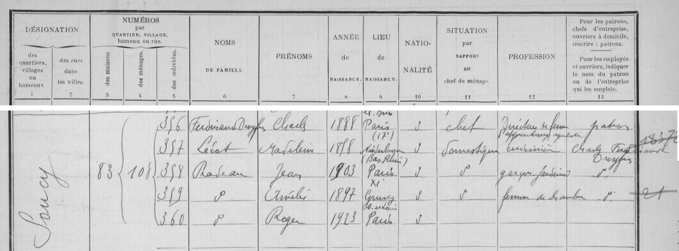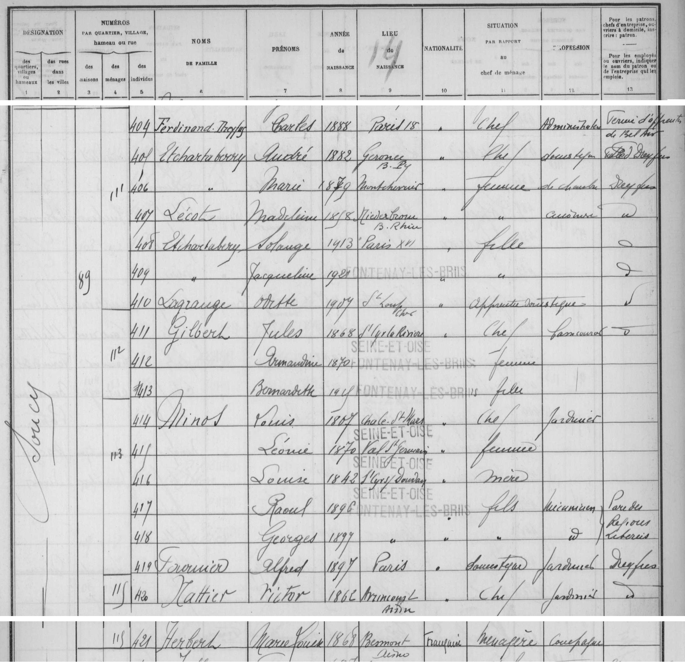 - Sa maisonnée à Soucy en 1931 — AD91 6M/138.