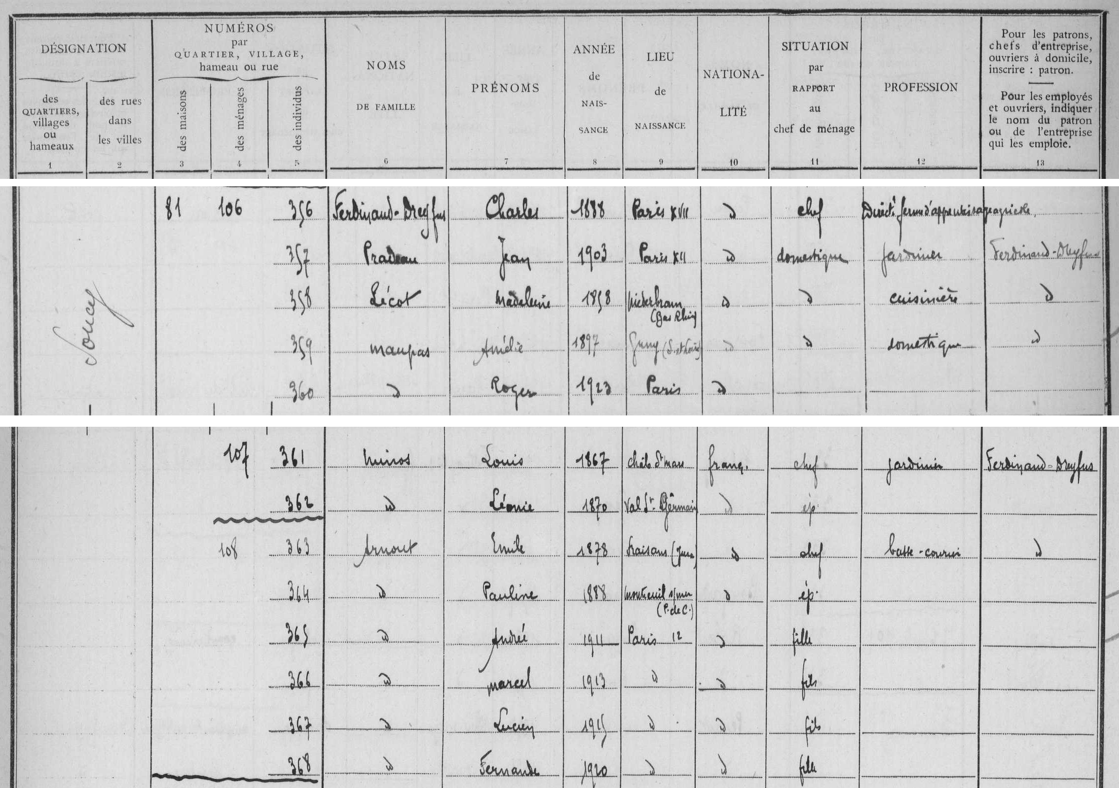 - Ferdinand-Dreyfus (Jacques, Isidore), né le 8 décembre 1884 à Paris (17e) (Seine), décédé le 5 août 1943 à Auschwitz (Pologne).