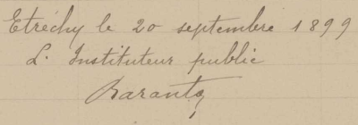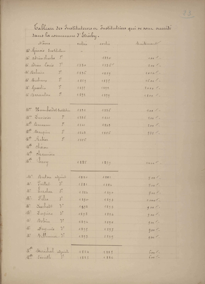 Tableau des instituteurs et des institutrices qui se sont succédé dans la commune d'Étréchy