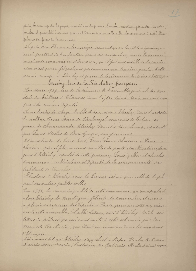 - Dom Fleureau nous apprend que le territoire d'Étréchy appartenait à plusieurs seigneurs à la fin du XVIIe siècle.