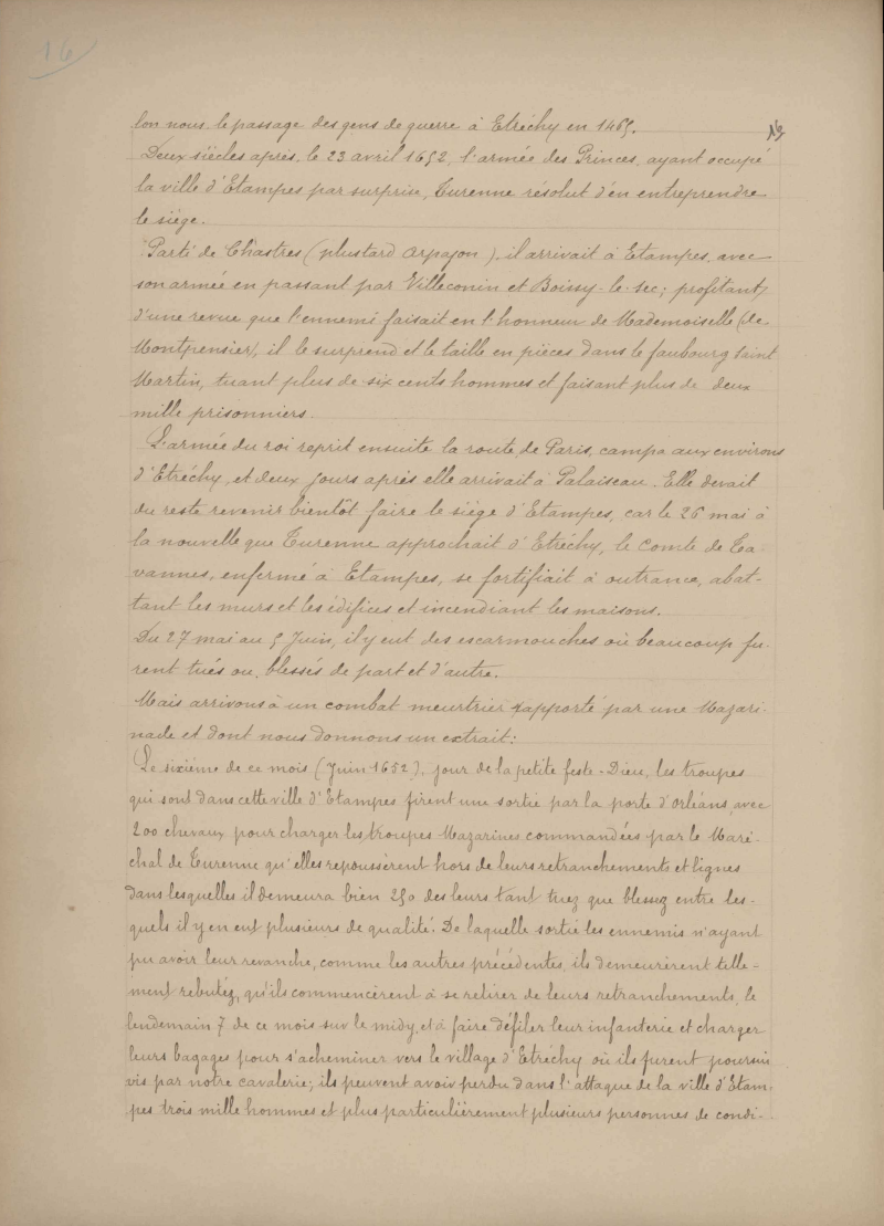 - Sans doute là aussi furent établies les cuisines où furent soignés et nourris les pauvres et les infirmes, pendant la misère de 1652 et années suivantes, comme il sera dit ci-après en parlant des gens de guerre à Étréchy.