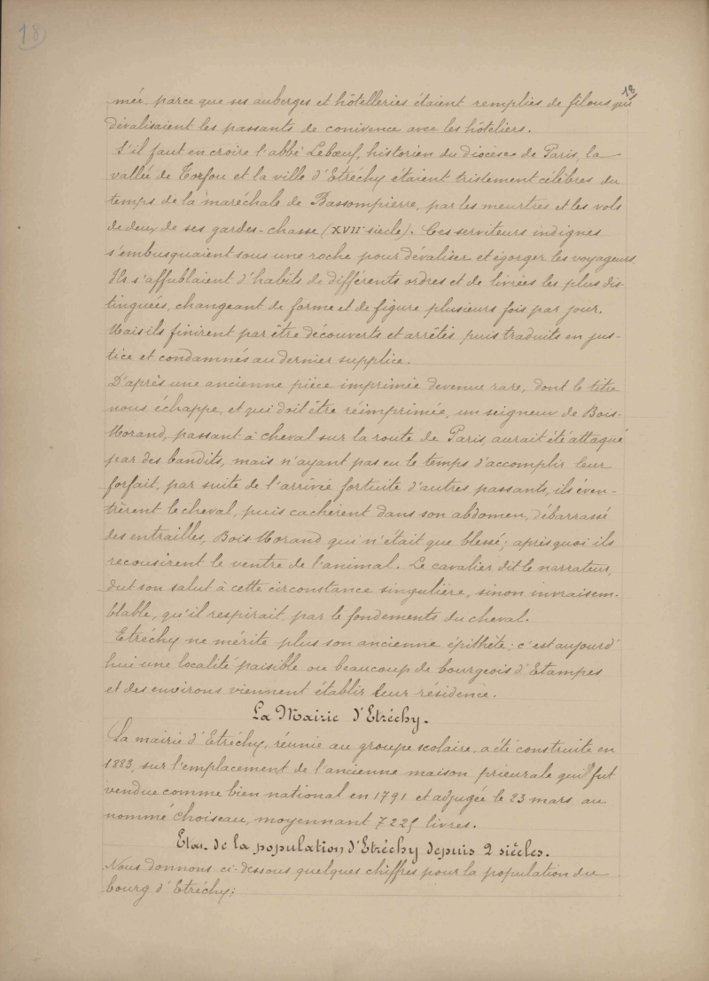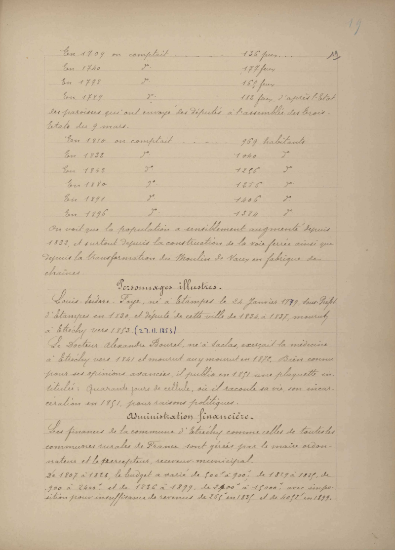 - Nous donnons ci-dessous quelques chiffres pour la population du bourg d'Étréchy: