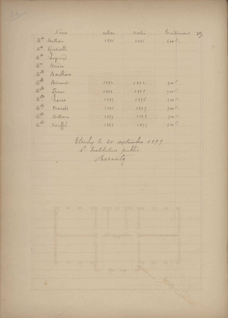 | Mlle Binant | …. | 1892 f. | 1892 f. | 900 f. |