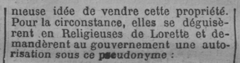 - Pour la circonstance, elles se déguisèrent en Religieuses de Lorette et demandèrent au gouvernement une autorisation sous ce pseudonyme: