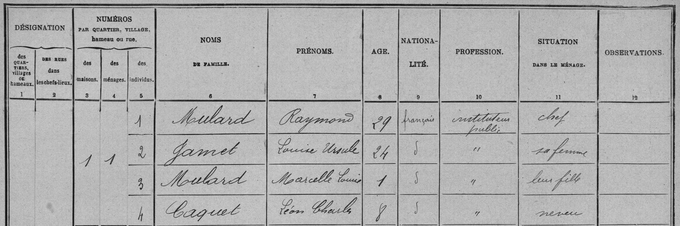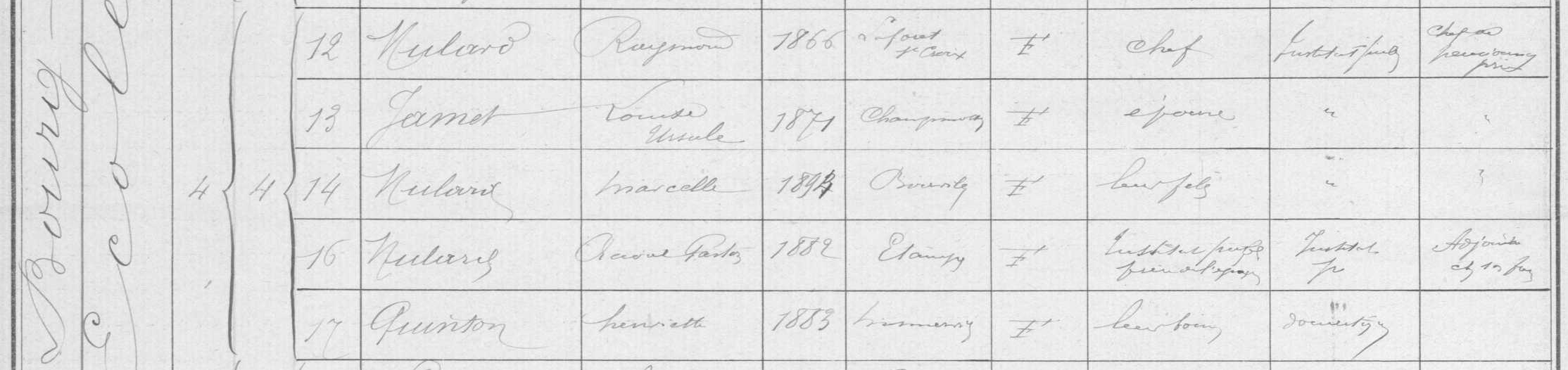 - Félix-Auguste-Eugène Mulard (1843-1908), marié avec Zéphirine-Elmire Deschamps (1848-1914)