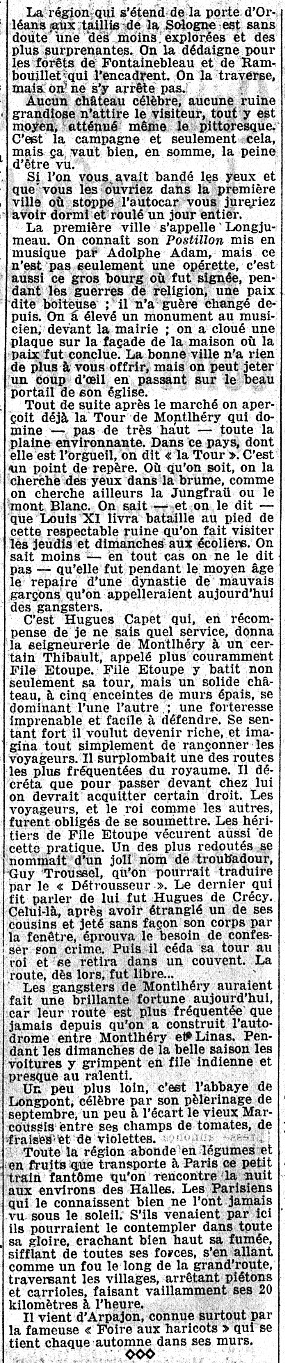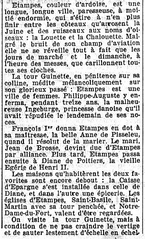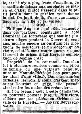 - Janine Bouissounouse, “Petit tourisme: Étampes et Montlhéry”, L'Intransigeant 56 (5 mai 1935) 2.