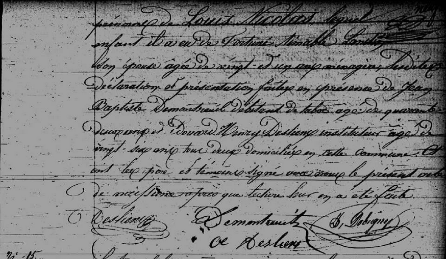 - Il ne faut pas confondre Louis-Nicolas Desliens avec son petit-frère, neuvième enfant du même couple, à savoir Louis-Eugène Desliens, né en 1869, qui fut comme lui instituteur, mais à Argenteuil (Val-d'Oise).