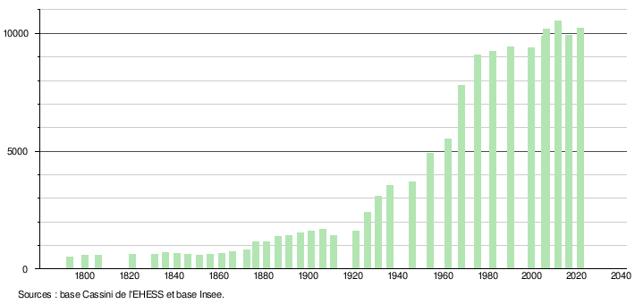 Sur la base de données empruntées, pour les années 1793-1999, au site du Laboratoire de Démographie et d'Histoire Sociale de l'EHESS, École des hautes études en sciences sociales; et, pour les années 2006 à 2021, au site de l'INSEE, Institut national de la statistique et des études économiques.