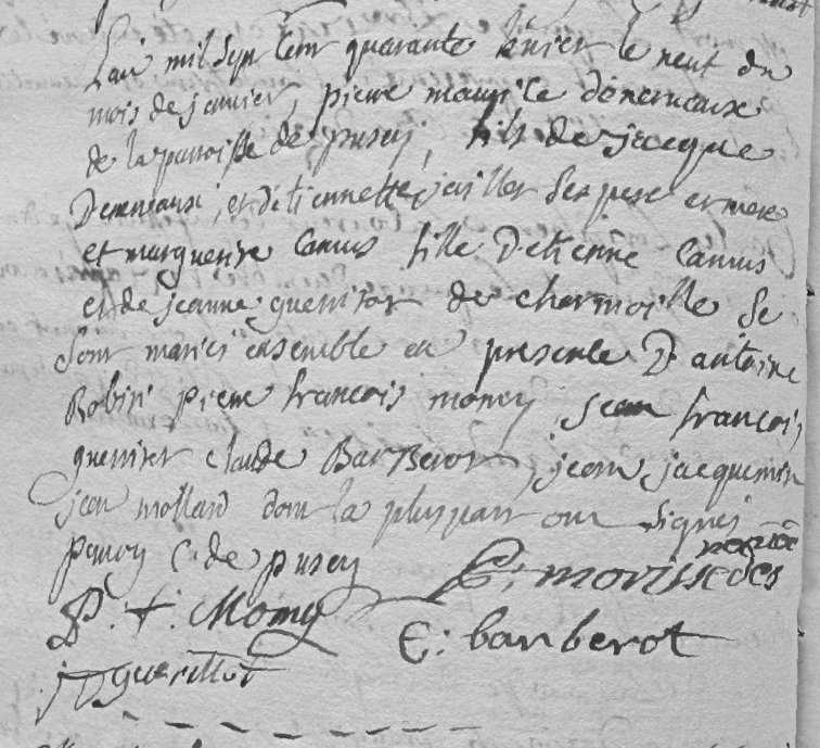 - Mariage de ses parents à Pusey (Haute-Saône) en 1748.