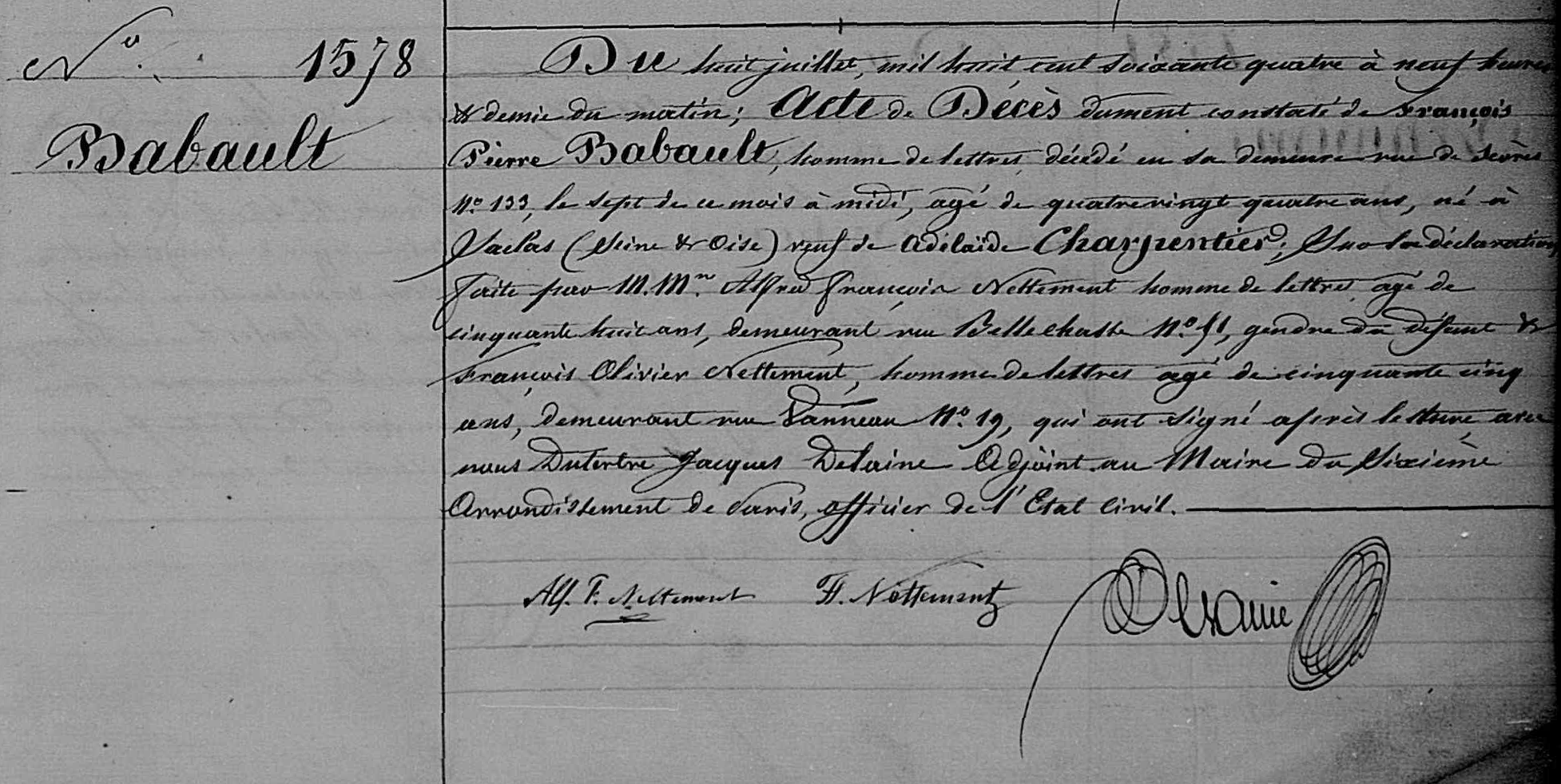 - Acte de décès à Paris (1864)