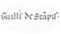 - F. Guillelmus Gallicus alter laudatur ab eodem Laurentio, et scripsisse dicitur: Postillam super Apocalypsin. — In catalogo sacrae theologiae magistrorum Parisensium apud Bernardum Guidonis n. XI recensetur F. Guillelmus Gallicus, et in codd ms. Rutenensi et Tolosano additur de Stampis, quod insigne municipium est dioecesis Senonensis leucis 14 Lutetia dissitum, qui quidem Guillelmus yidetur circa MCCL claruisse. Huic vero tum ob Gallici cognomen, tum ratione studiorum ejus aetatis opus allatum libens tribuerem. Cùm tamen aliunde nobis non desint Galli magistri etiam Parisienses, quales Guillelmus de Costa Pictaviensis, aliis Ingolismensis, anno MCCCXXIV clarus, Guillelmus de Castroreginaldi Bituricensis, qui et Gallicus dicitur anno MCCCXXVI florens, Guillelmus Caletot Normannus circa MCCCXXX et alii plures, quibus idem opus tribui potest, satius est rem dubiam relinquere.