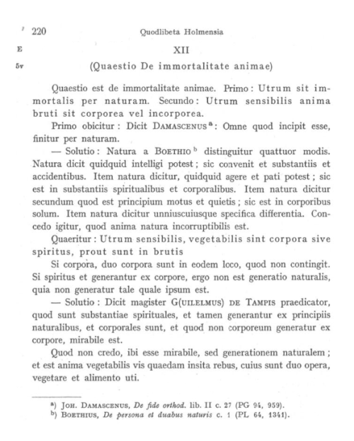 - Friedrich Stegmüller, “Quodlibeta Holmensia” (édition d'une série de questions fantaisistes conservée à Stockholm par un manuscrit du XIIIe siècle), Divus Thomas 27 (1949) 201-222 spéc. 220.