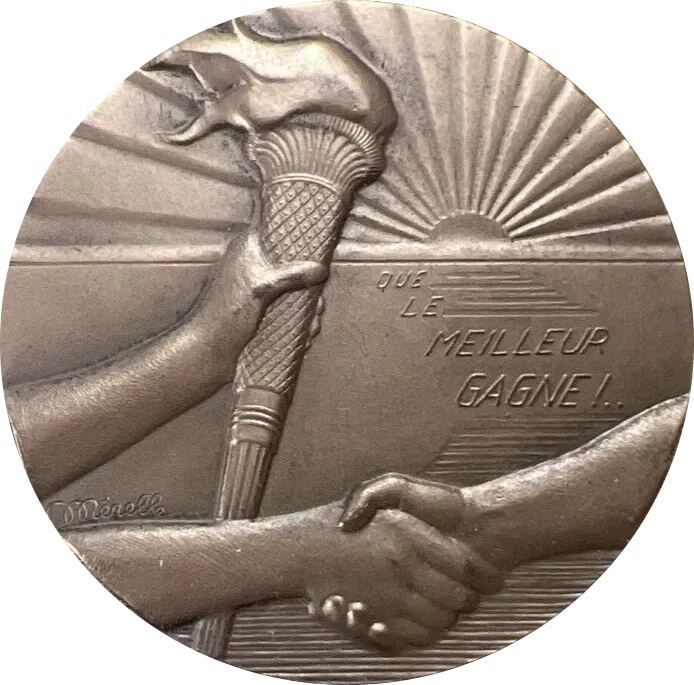 - Avers: QUE LE MEILLEUR GAGNE — Merelle [René Mérelle (1903-1990) médailleur]
