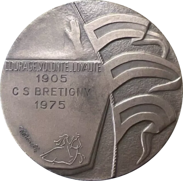 - Revers: COURAGE - VOLONTE - LOYAUTE — 1905 — CS BRETIGNY — 1975 — Merelle [René Mérelle (1903-1990) médailleur]