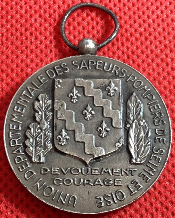 - Revers: UNION DEPARTEMENTALE DES SAPEURS-POMPIERS DE SEINE-ET-OISE — DEVOUEMENT — COURAGE
