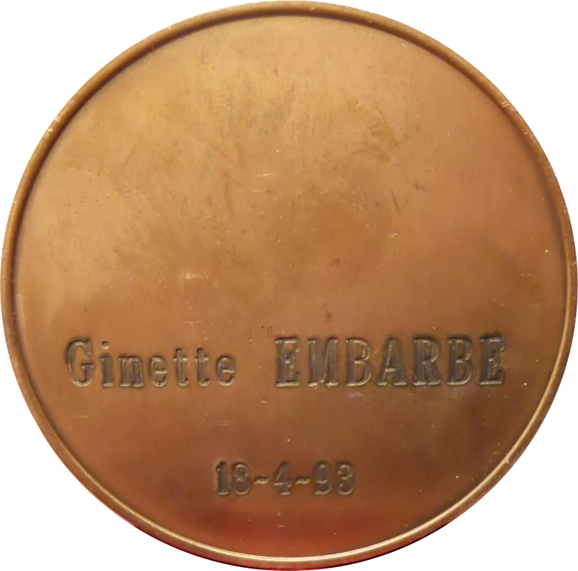 - Revers: [Personnalisé:] Ginette EMBARBE — 18-4-93