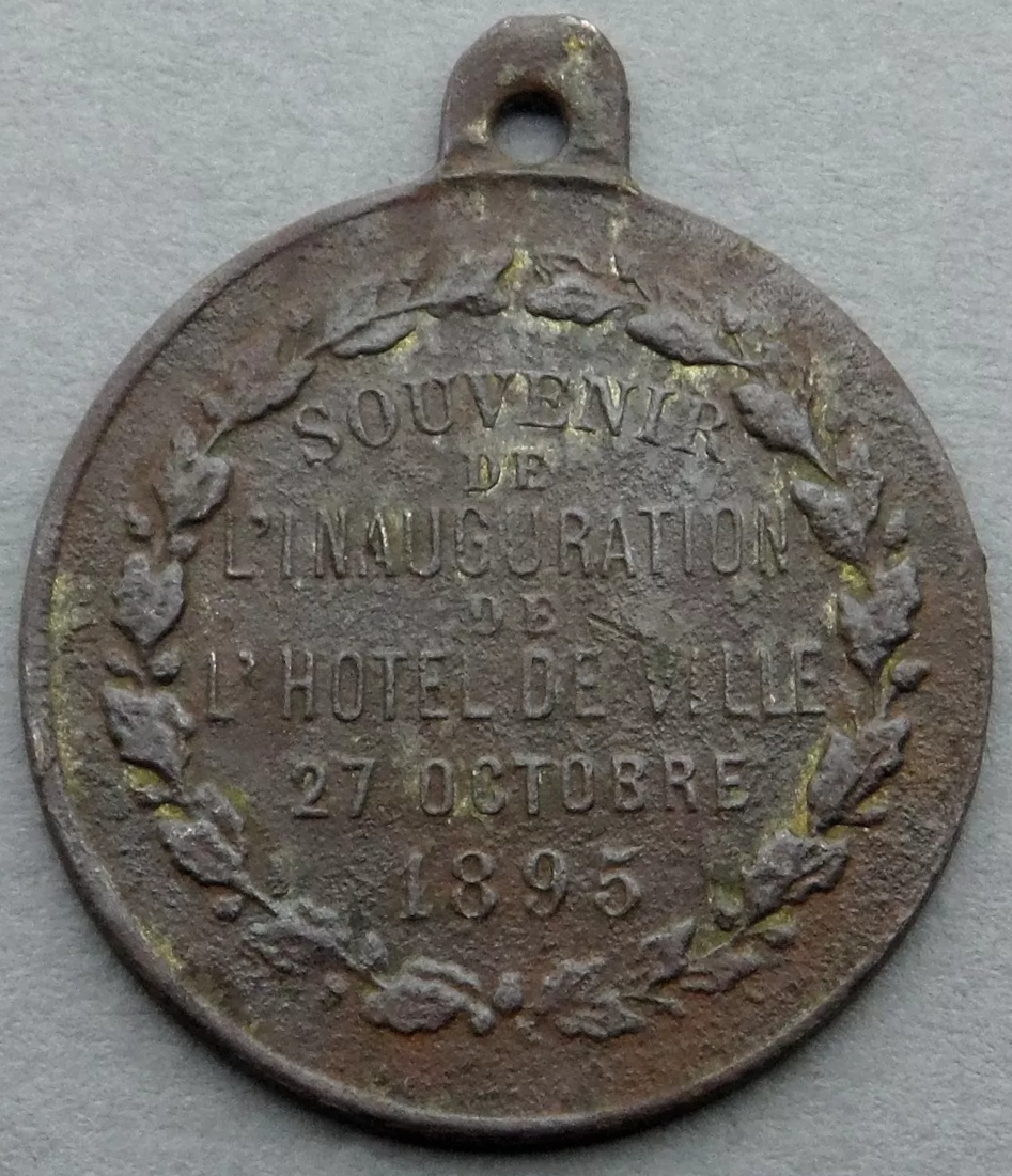 - Revers: SOUVENIR DE L'INAUGURATION DE L'HOTEL DE VILLE 27 OCTOBRE 1895