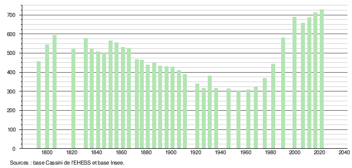 Sur la base de données empruntées, pour les années 1793-1999, au site du Laboratoire de Démographie et d'Histoire Sociale de l'EHESS, École des hautes études en sciences sociales; et, pour les années 2006 à 2021, au site de l'INSEE, Institut national de la statistique et des études économiques.