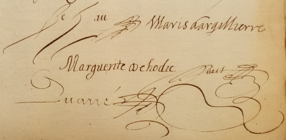 - Le 22 décembre 1649, devant le notaire parisien Antoine Huart et son collègue Quarré, Philbert Le Jau, écuyer, sieur de Chamberjot, conseiller du Roi, ainsi que Marguerite de Hodie son épouse vendent à Marie Dargilierre, veuve de Jean de Bizemont, écuyer, demeurant à Mondeville près de la Ferté-Alais, la ferme et seigneurie de La Padole, moyennant 6000 livres.