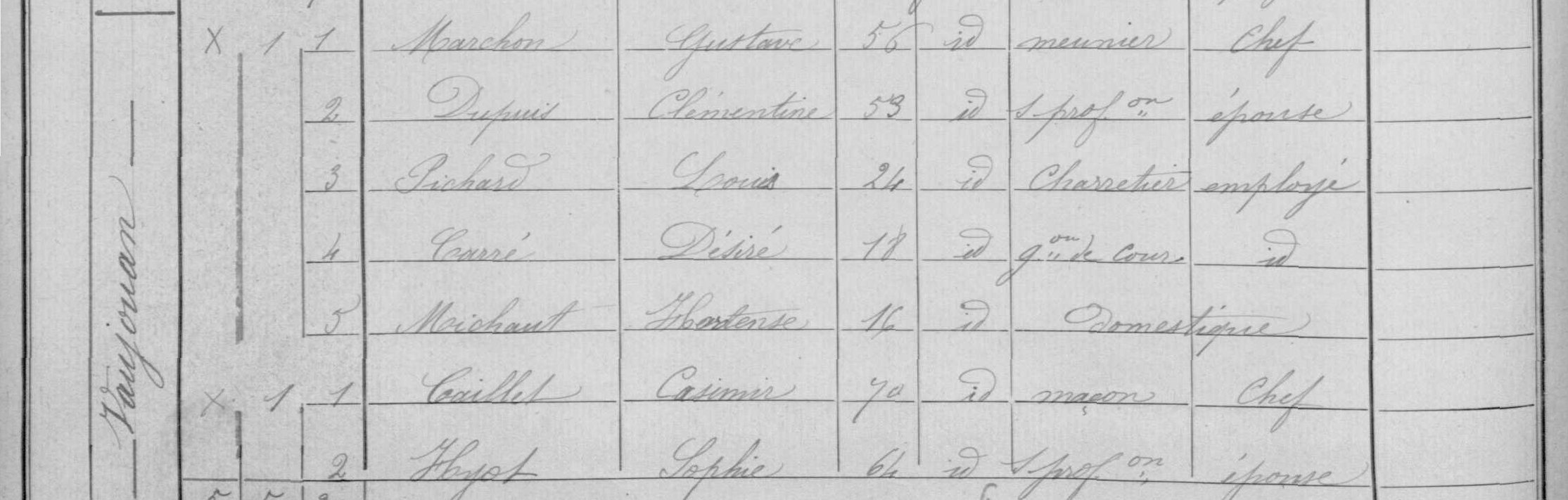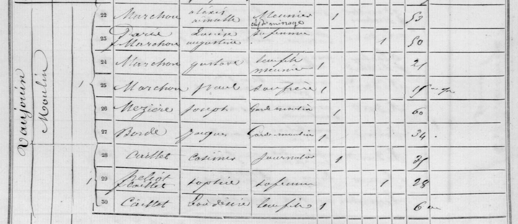 - 1856 — Joseph Mézière, garde moulin — Jacques Bordes, garde moulin — Casimir Caillet, journalier.